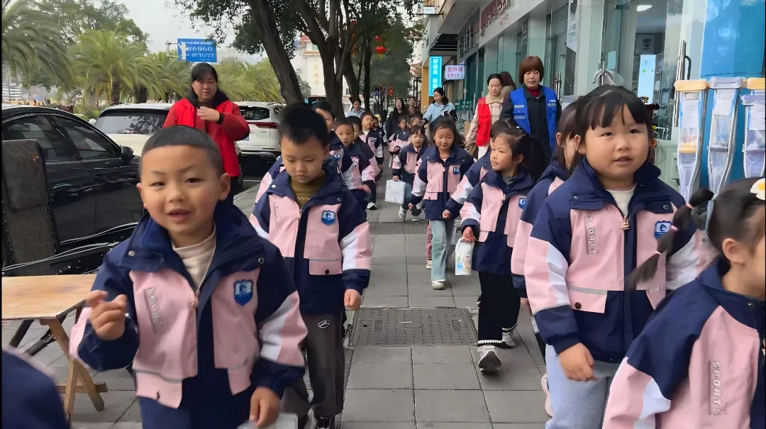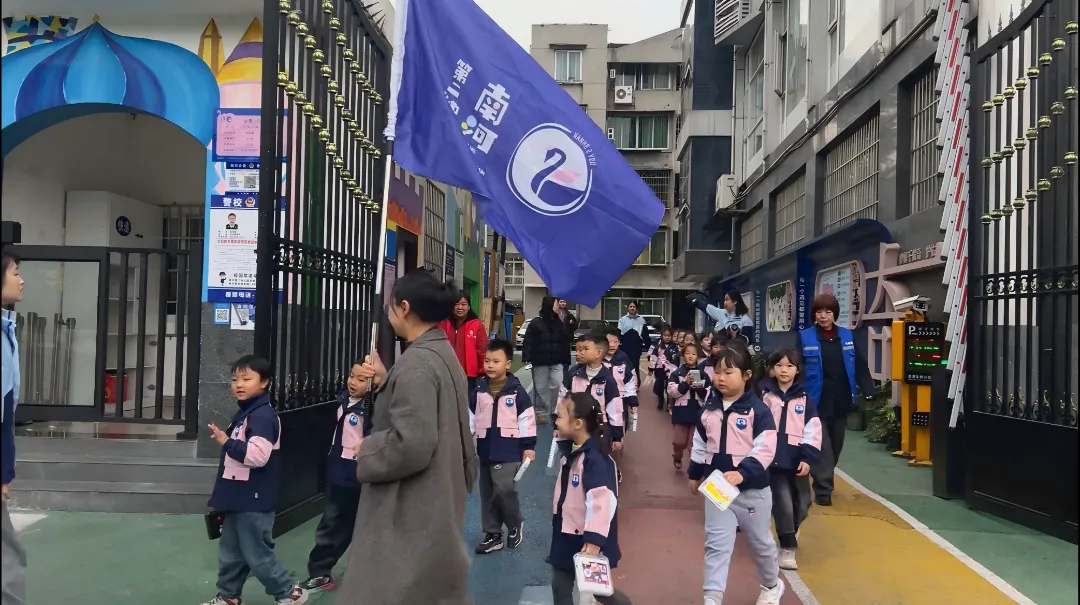 萌娃们排着整齐的队伍,唱着歌儿向社区出发。