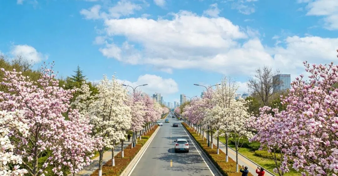 我把朋友发我的“郑州赏花攻略”看了又看,上面密密麻麻地写着:玉兰街的玉兰、碧云路的梅花、江山路的桃花、迎宾路的紫叶李、汝河路的樱花、昆仑路的楸树、金水西路的海棠、经开第八大街的紫荆……十几条路,十几样花,从三月一直开到五月。