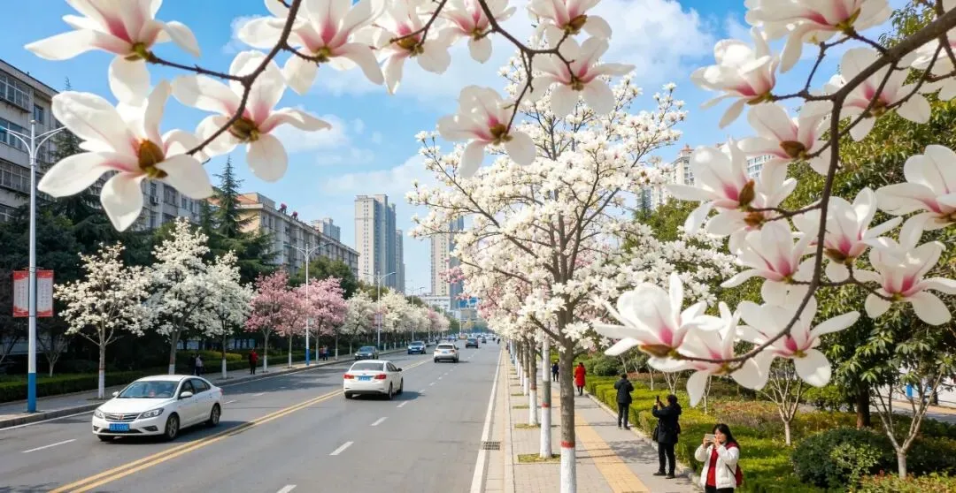 可我倒是觉得,玉兰街上的玉兰,才是真正的玉兰。它们就长在路边,不高不低,正好让你路过时,一抬头就能看见。没有围栏,没有门票,你想看多久就看多久。这是一种平等的馈赠——城市的美,不锁在公园里,就摊在你眼前。