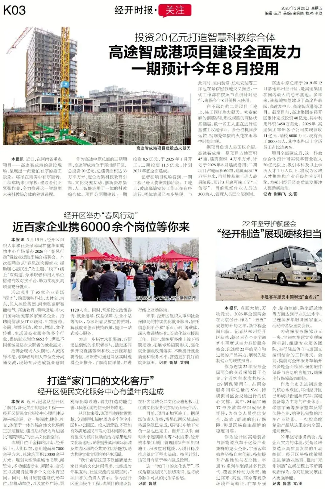 >《郑州晚报·经开时报》版面Show|经开区召开党工委(扩大)会议暨区党工委党的建设工作领导小组会议