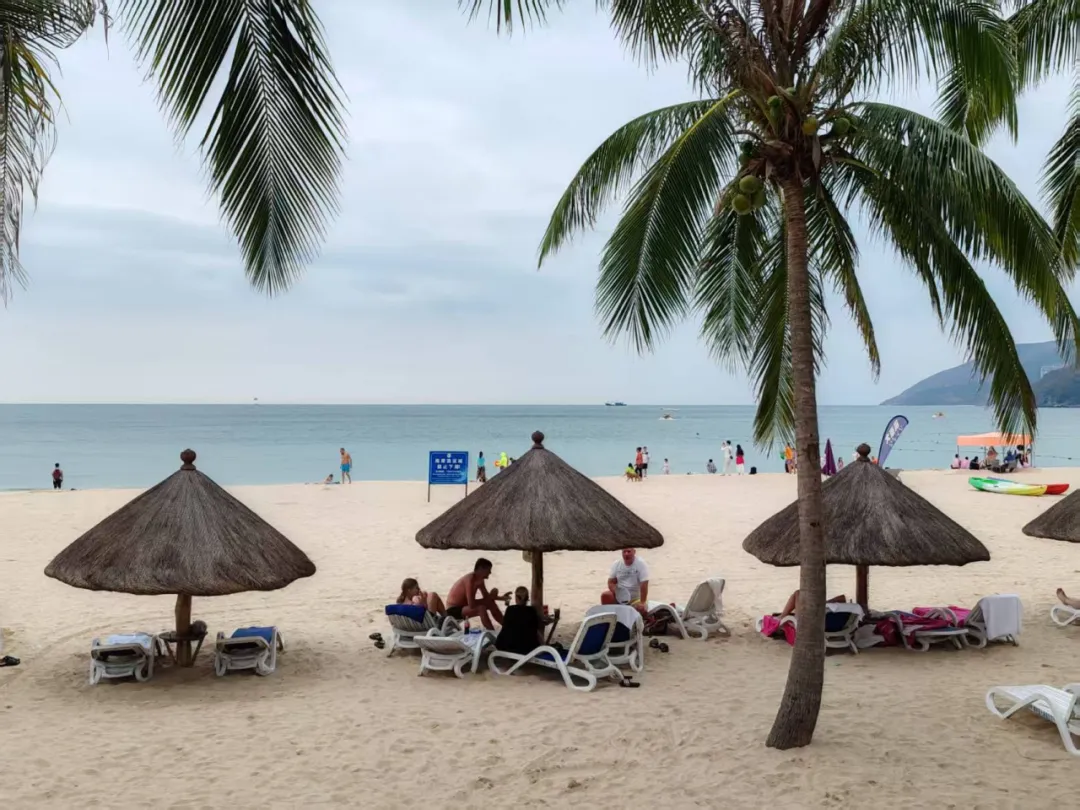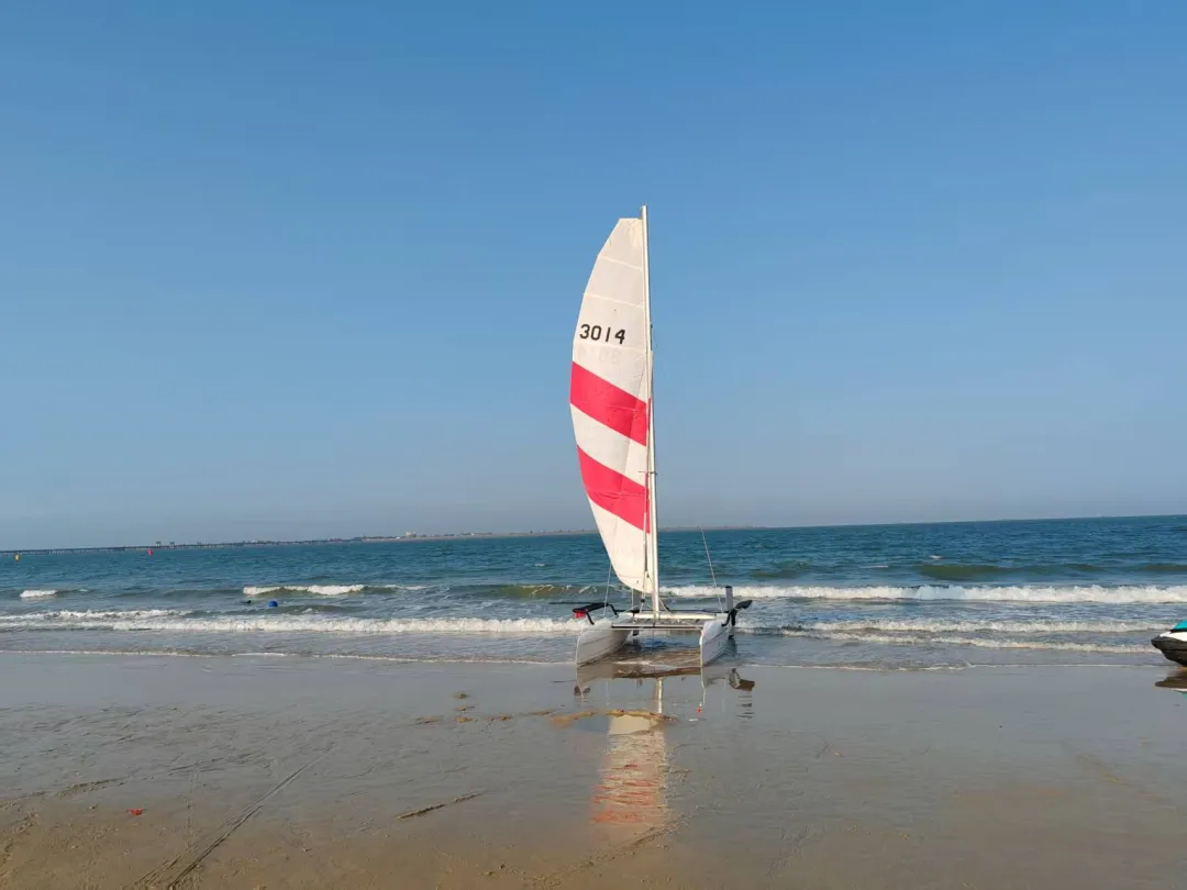海滨无处不歌飞,管乐声声脆。舞袖翩翩半沉醉,面微绯,兴来忘记人年岁。椰风弄衣,云帆戏水,直叫忘情归。