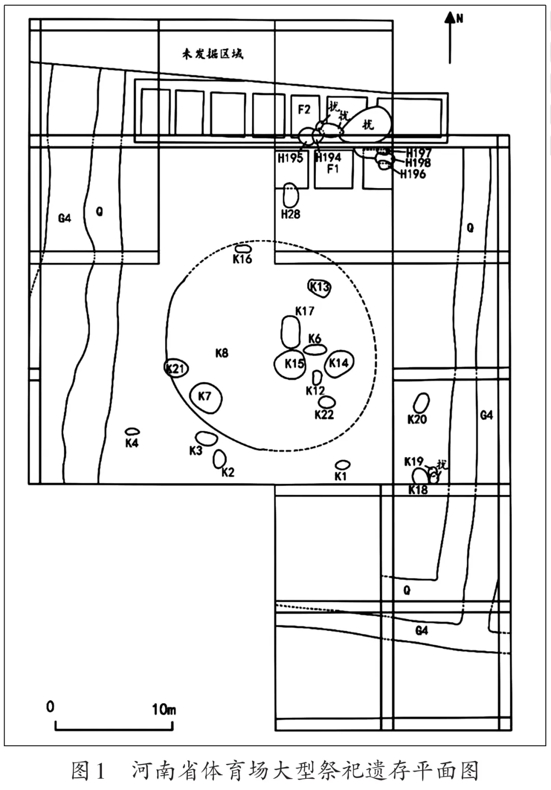 河南省体育场商代祭祀遗址是近年来郑州商城最为重要的考古新发现之一。考古资料证明,早商时期在郑州商城有频繁的祭祀活动,各区域都遗留下来零散的祭祀遗存。该发现填补了郑州商城缺乏大型完整祭祀空间的空白,丰富了我们对早商时期祭祀方式的认识。体育场院落式祭祀场的发现,如同提供了一把“钥匙”,为我们理解郑州商城其他区域中发现的零散祭祀遗存,开启了一个全新的认知空间。