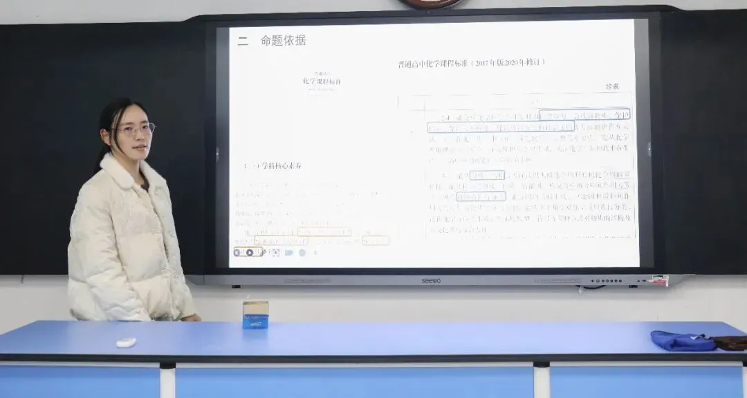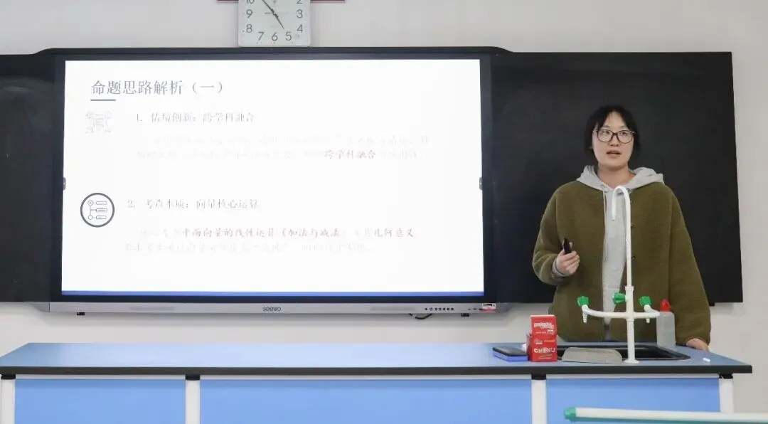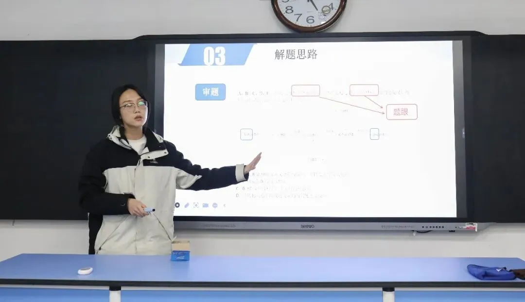 参赛青年教师站位高考改革前沿,精准把握 2026 年高考命题稳基础、重情境、强教考衔接的核心导向,在说题过程中,既清晰梳理了原创试题对应的课标知识点、学科核心素养水平及高考评价体系 “一核四层四翼” 要求,又深入剖析题眼、陷阱与解题思维路径,更结合河南省高考政策变化,从试题命制角度解读了高考 “价值引领显性化、教材改编题提质、探究性试题成熟化、五育并举融情境”等新动向。同时,教师们紧扣教学实践,提出试题变式方向与日常教学启示,将高考命题规律与课堂教学深度融合,让试题命制成为链接高考与教学的重要桥梁,充分体现了青年教师对高考改革的深刻理解和对教学实践的精准把控。