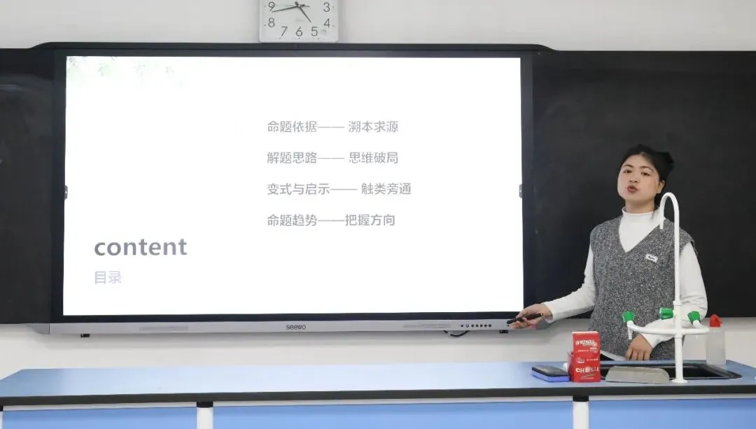 本次比赛紧扣新高考 “无价值,不入题;无思维,不命题;无情境,不成题” 的命题共识,对语数英、选考科目分别设定命题要求,参赛教师需从对应高考试卷中选取典型真题,遵循其命题思路完成原创题命制,并从命题依据、解题思路、变式启示、命题趋势四个维度展开 5 分钟说题展示。比赛现场,第一组语、外、政、史、地、化学科教师与第二组物、生、数学科教师依次登场,借助精心制作的 PPT 课件,从容展开说题分享。