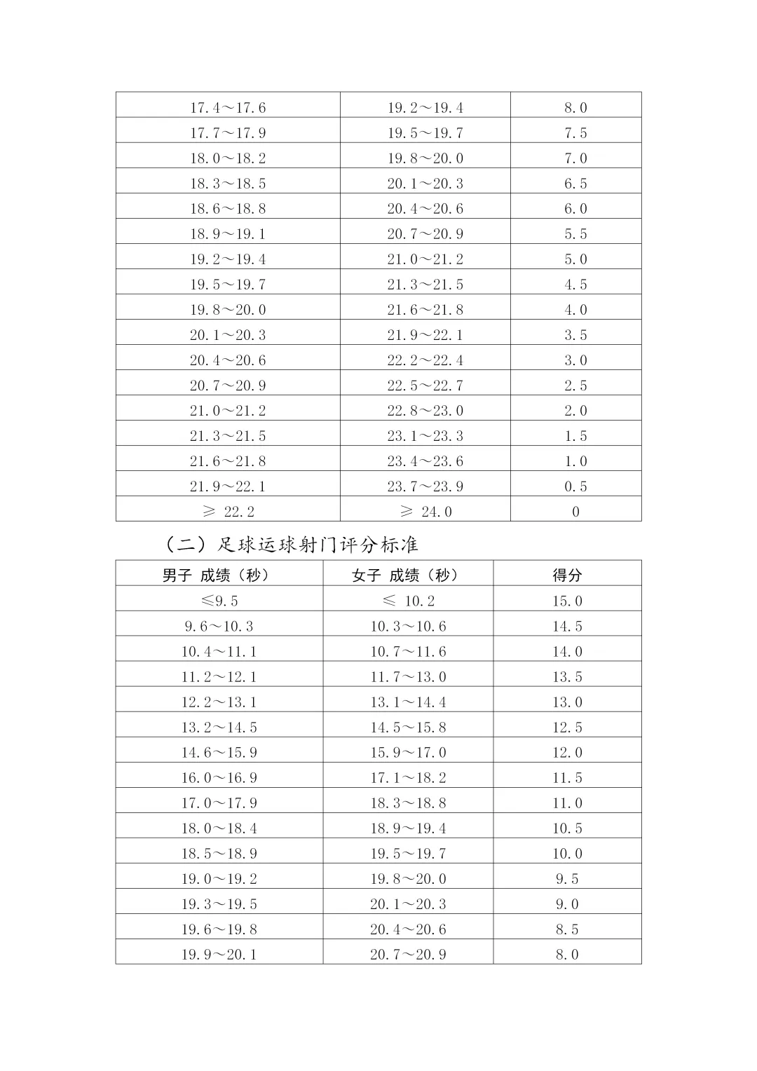 立定跳远:男生2.50米=15分,女生2.02米=15分,每短0.03米约扣1分。
