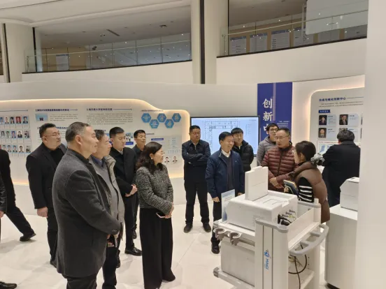 参访团在研究院行政管理中心主任王玲雪、生物医药创新中心主任助理郭云飞博士、行政管理中心主任助理樊鹏飞等陪同下,先后参观了研究院展厅、智能装备与安全检测中心、整形外科人工智能实验室、AI + 数字医学中心、智能制造产教融合平台及成果展示区。