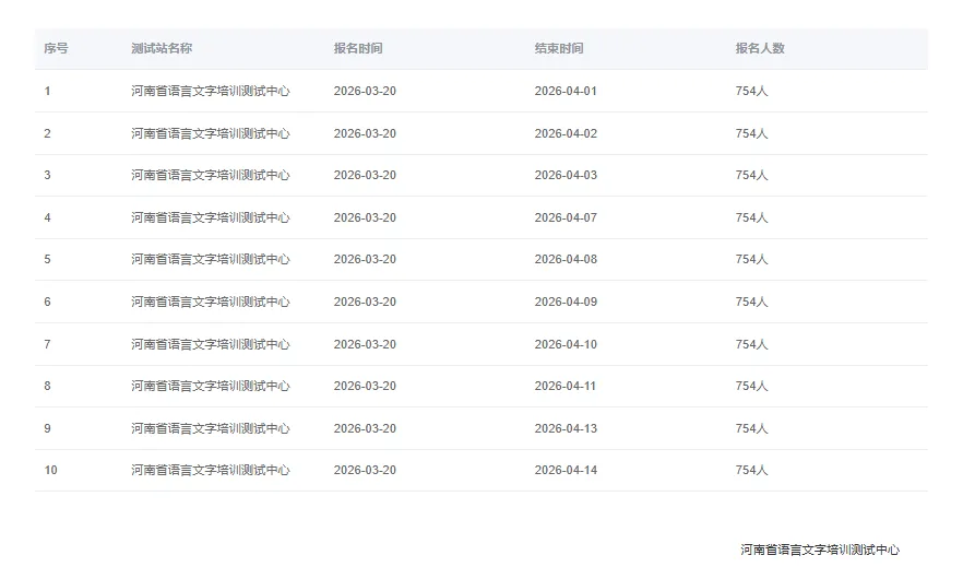 为切实满足各类人员的普通话水平测试需求,经研究,我中心拟于2026年4月中上旬举办面向社会人员的普通话水平测试。现将有关事宜通知如下: 请考生认真阅读下方报名通知中测试的对象、时间、地点以及缴费等相关要求,确认能否按时参加测试。报名成功后,报到时间、报名信息不可更改。考生须按准考证上的报到时间参加测试,超过报到时间30分钟未报到的作为弃考处理,且无法退费。不按要求报考,造成的损失自负。考生须持本人身份证原件、纸质版准考证参加测试,临时身份证、电子身份证、户口本等证件均无法参加测试。测试现场发现替考、违规携带设备、扰乱考场秩序等行为的,取消应试人当次测试资格。公布成绩后被认定为替考的,取消其当次测试成绩,已发放的证书予以作废,并记入全国普通话水平测试违纪人员档案,视情况通报应试人就读学校或所在单位。 一、报名对象 各类社会人员及所在学校未建立普通话水平测试站的全日制在校生。 二、报名测试时间及地点 报名时间:2026年3月20日 上午10:00起 报满即止 测试时间:2026年4月1日、2日、3日、7日、8日、9日、10日、11日、13日、14日、15日 测试地点:郑州市金水区西里路33-附2号河南省语言文字培训测试中心 三、报名方式 考生通过国家普通话水平测试在线报名系统报名,不接受线下报名。 报名流程:注册账号 → 报名 → 在线缴费 → 打印准考证。 1.注册账号。考生登录国家普通话水平测试在线报名系统,点击网页右上角“登录”键,弹出登录框后,点击“注册”并填写信息。 请考生认真填写本人真实信息。“从事职业”一栏,请按现有身份进行选择。如教师(有教师资格证原件或在编公立学校老师)请选语文老师或非语文老师,在校学生请选师范生或非师范生等。此信息将在后续报名时自动代入报名信息,可提前注册登录。 2.报名。考生注册登录成功后,在首页报名入口一栏选择省份“河南”。进入“选择考点”页面后,选择“河南省语言文字培训测试中心”,根据自身安排选择测试时间。 填写报名信息时需认真核对报名信息,确认无误后点击下一步。报名成功后报名信息将被锁定,错误信息无法更改,报到时如核对出信息不一致,将取消本次测试资格。 3.在线缴费。考生请按现有身份选择相应的缴费金额(注:按“学生”或“教职工”标准缴费的,测试当天应提供其相应身份证件原件,如:全日制在校生学生证、学信网学籍验证,教师资格证、公立学校人事部门证明等),报名费用需在30分钟内支付(微信、支付宝、云闪付等支付软件均可使用)。具体金额按照《财政部 国家发展改革委关于公布取消和停止征收100项行政事业性收费项目的通知》(财综〔2008〕78号)、《河南省发展改革委 河南省财政厅关于转发〈国家发展改革委、财政部关于普通话水平测试费和国家普通话水平等级证书工本费收费标准的通知〉的通知》(豫发改办〔2004〕422号)规定执行:社会人员50元/人,教育系统职工30元/人,在校学生20元/人。考生缴费成功后报名完成,报名费均不予退还。 4.打印准考证。考生在线缴费成功后请在报名系统自助打印准考证,认真阅读《考生须知》的要求,并按准考证上规定的“报到时间”参加测试。 中心声明:河南省语言文字工作信息网是河南省语言文字工作委员会办公室唯一官方网站。河南省语言文字培训测试中心(微信公众号)是河南省发布普通话报名、测试、成绩查询等相关信息的官方渠道,请勿相信不明网站的宣传。网报所有测试名额均向社会开放,报名成功后直接通过在线报名系统http://bm.cltt.org/缴费。本中心未与任何社会培训机构、中介机构或其他营利性机构或组织,合作开展培训、代理报名、内部报名等工作,出现对话框提示“加好友”才能继续报名或被告知“必须通过某机构才能报名”等类似信息均为虚假信息。请考生注意个人信息和财产安全,切勿相信任何机构“代报”“包过”等宣传,预报名考生在报名、缴费等各环节增强安全防范意识,谨防上当,诚信应试。识别下方二维码添加老师,快速了解全国各地普通话考试最新报名日期,免费领取2026考试新题资料哦