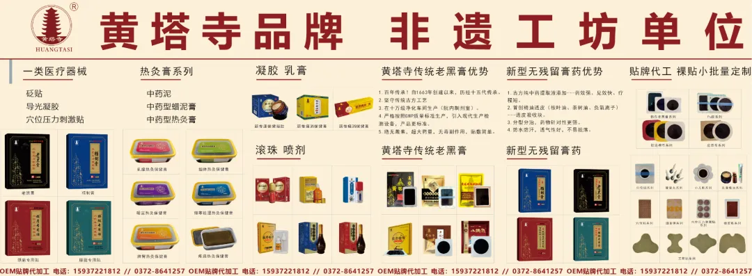 河南黄塔寺医药科技有限公司,作为非遗工坊单位,携全系列膏贴产品与OEM代加工服务,重磅亮相全国大健康产业(郑州)博览会,诚邀各界同仁莅临洽谈!