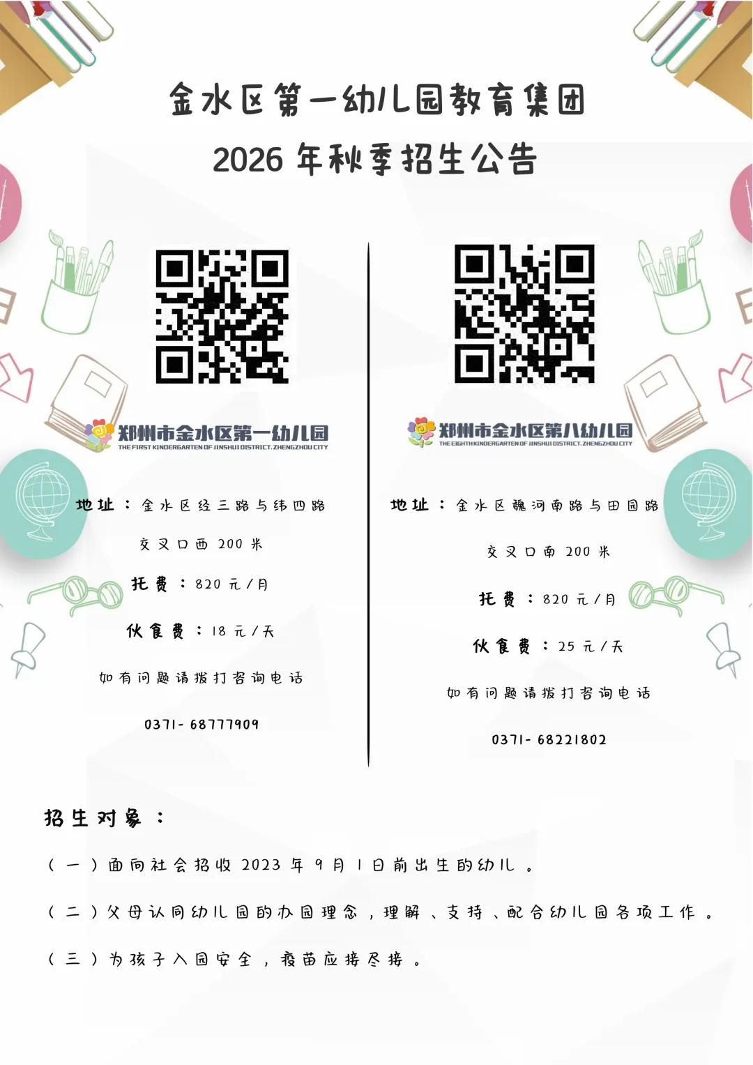 >郑州市金水区第一幼儿园教育集团2026年秋季招生公告