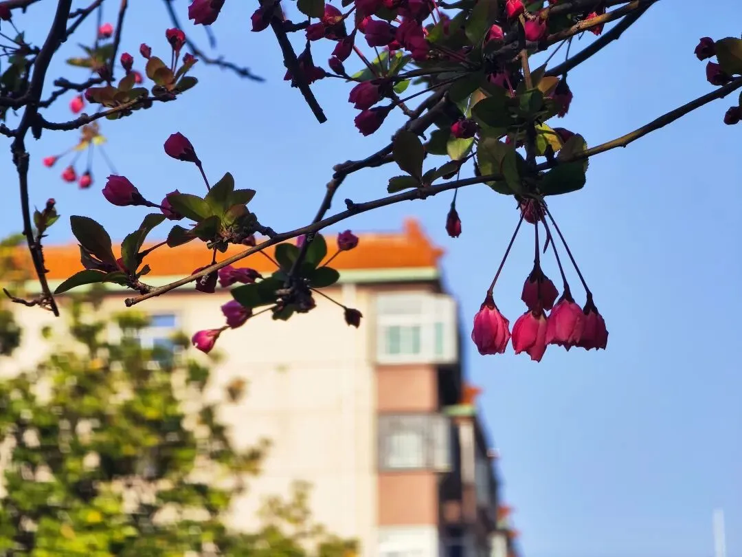>郑州月季公园:海棠垂丝半开时,恰似含羞半遮面
