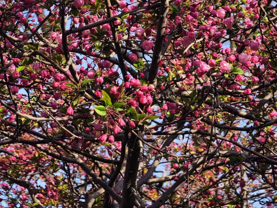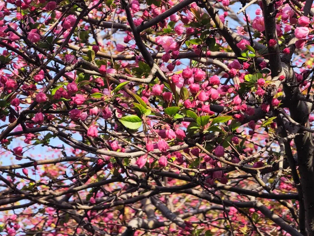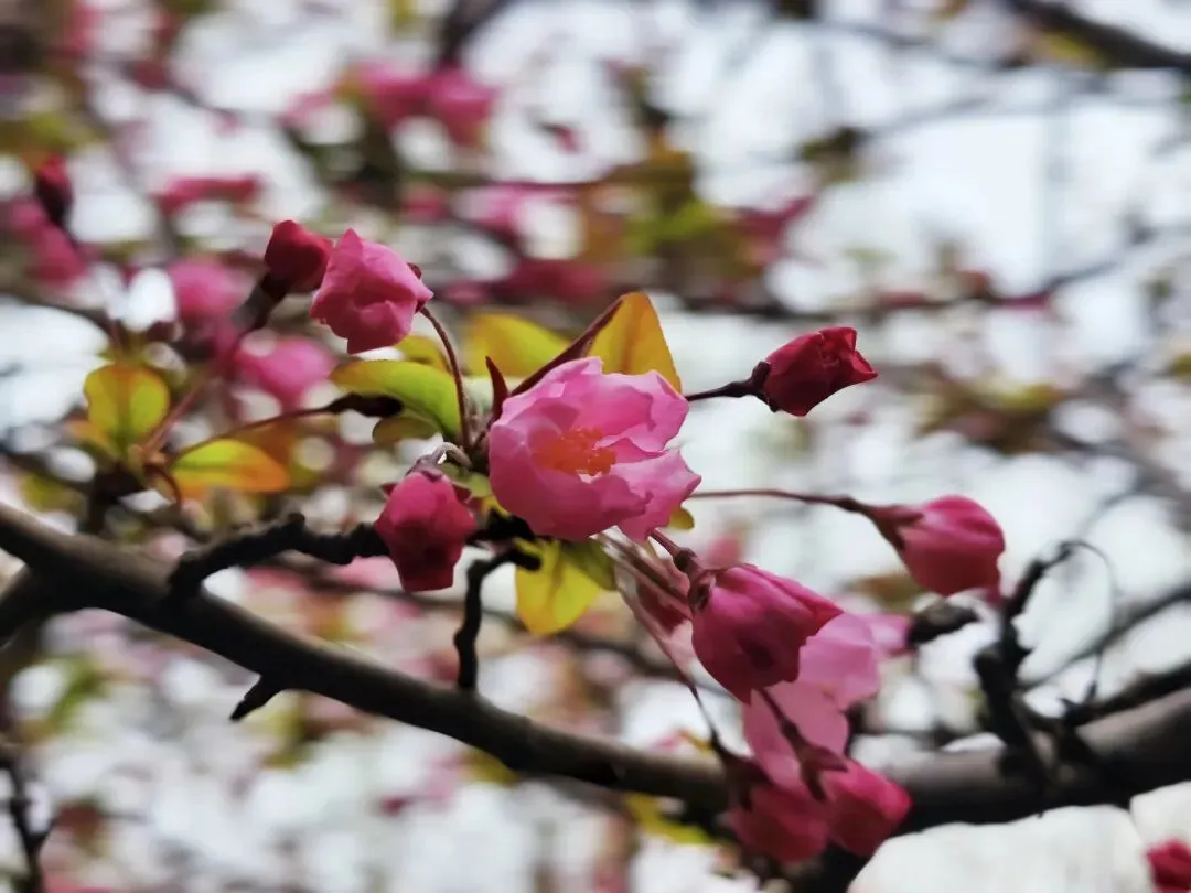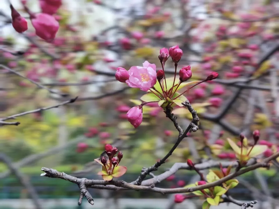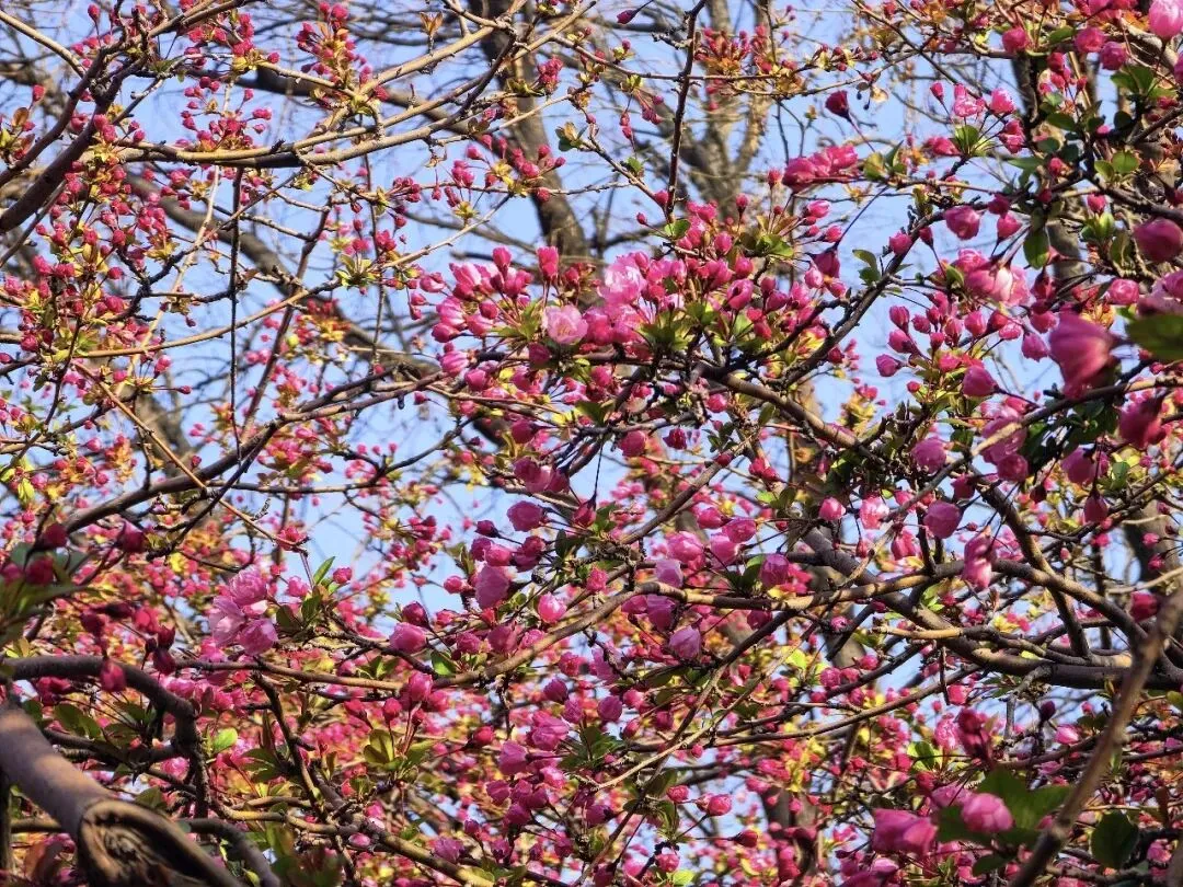 瞧!郑州月季公园内,垂丝海棠准备好了。