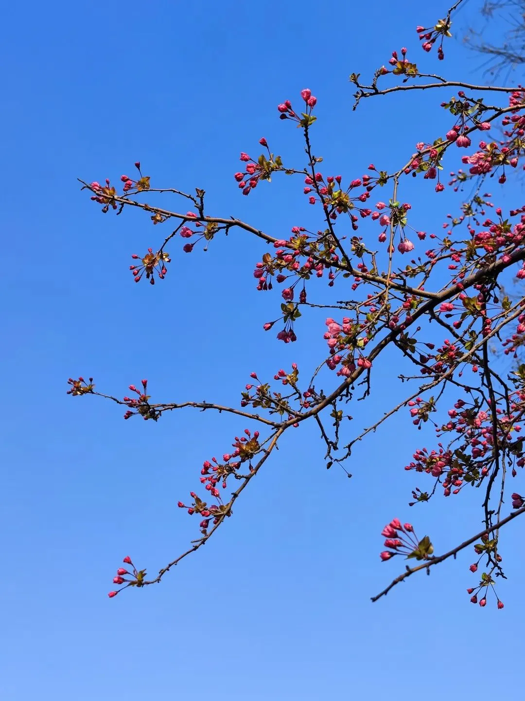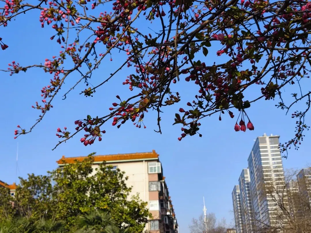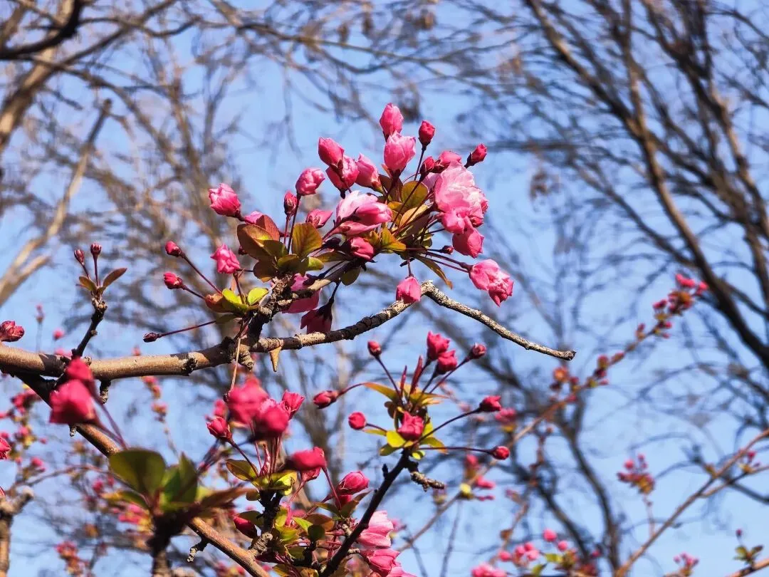 蓝天下,枝条上缀满花苞,是对更加美好春日的向往。
