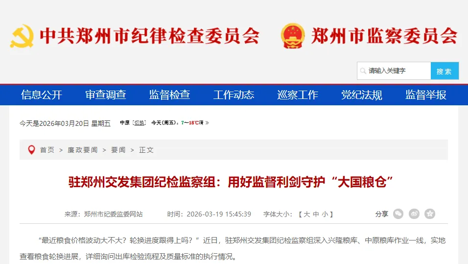 “开展‘嵌入式’监督,不仅要传导压力,更要推动企业强内控、防风险。”驻郑州交发集团纪检监察组负责人表示,将持续跟进监督,对苗头性、倾向性问题早发现、早提醒,对违纪违法问题严肃查处,以强有力的监督执纪守护好“大国粮仓”,切实筑牢群众“粮袋子”安全防线。(驻郑州交发集团纪检监察组)