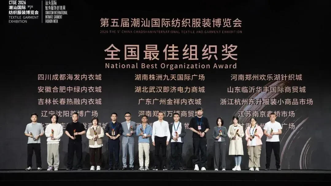 在本届潮汕服博会的颁奖盛典上,郑州欢乐湖针织城凭借高效的组织统筹、强大的品牌号召力、专业的参展服务,从全国众多参展产业集群中脱颖而出,荣获组委会颁发的“全国最佳组织奖”!