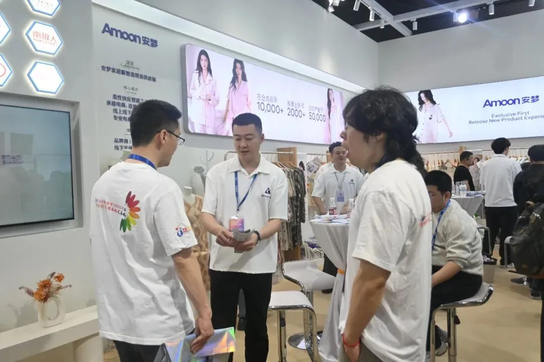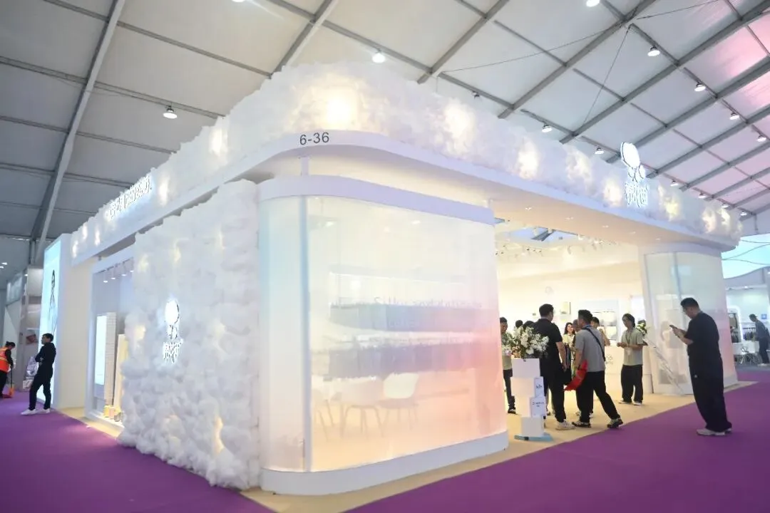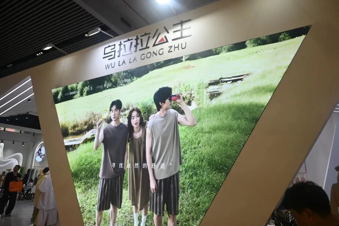 展会现场,欢乐湖众多品牌亮相:棉花囤、彩衣萱、劲蓝、乌拉拉公主、东方・茜维诗、窈窕身姿、秘密地带、伊丝艾拉、姐妹花、香月明美、富欣娜、MS等。