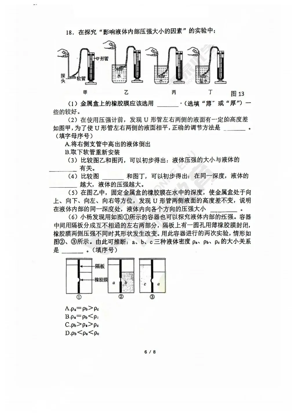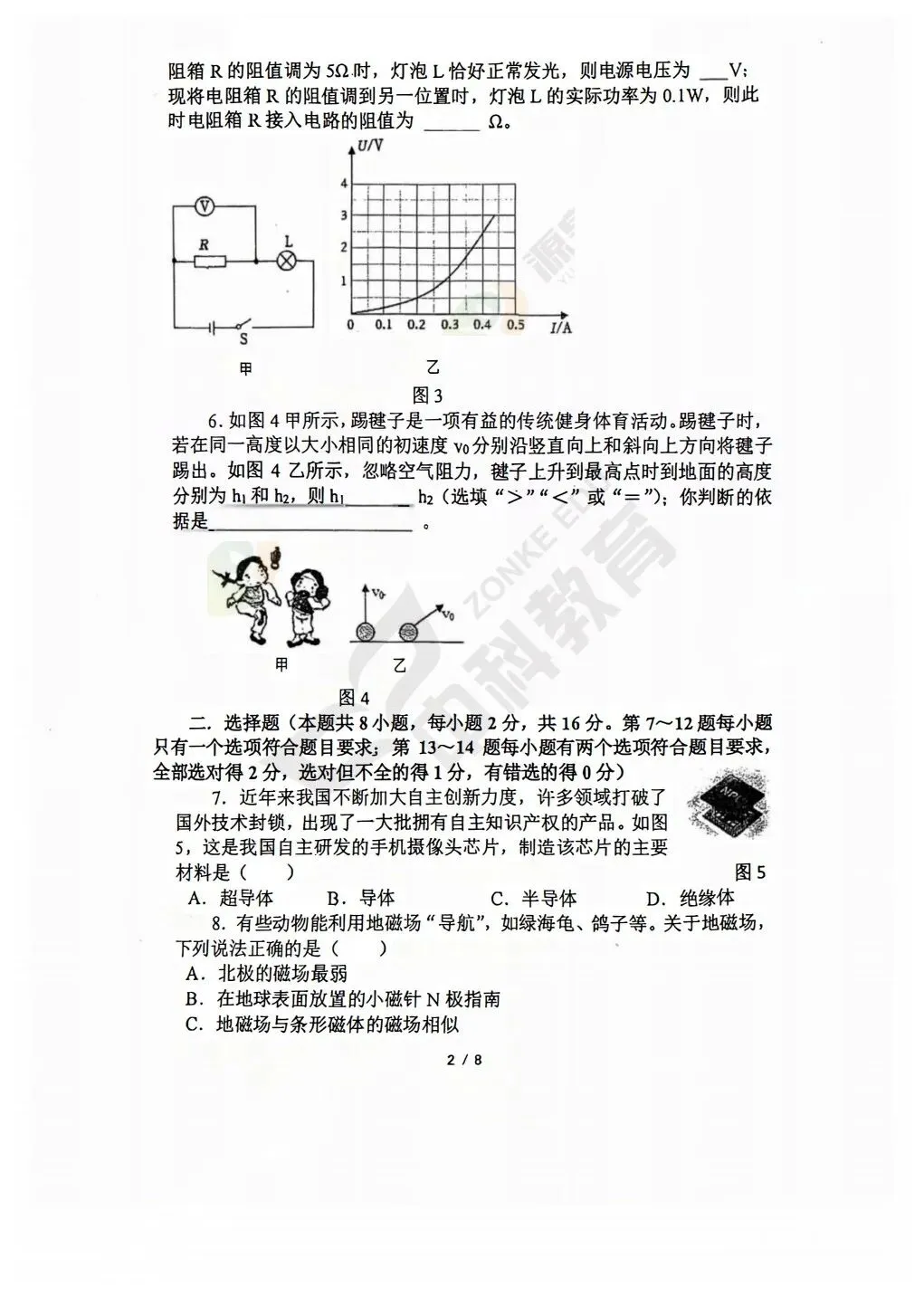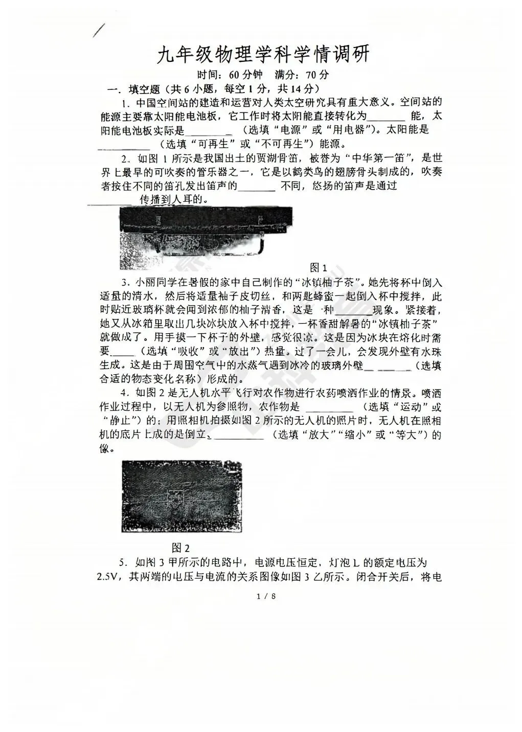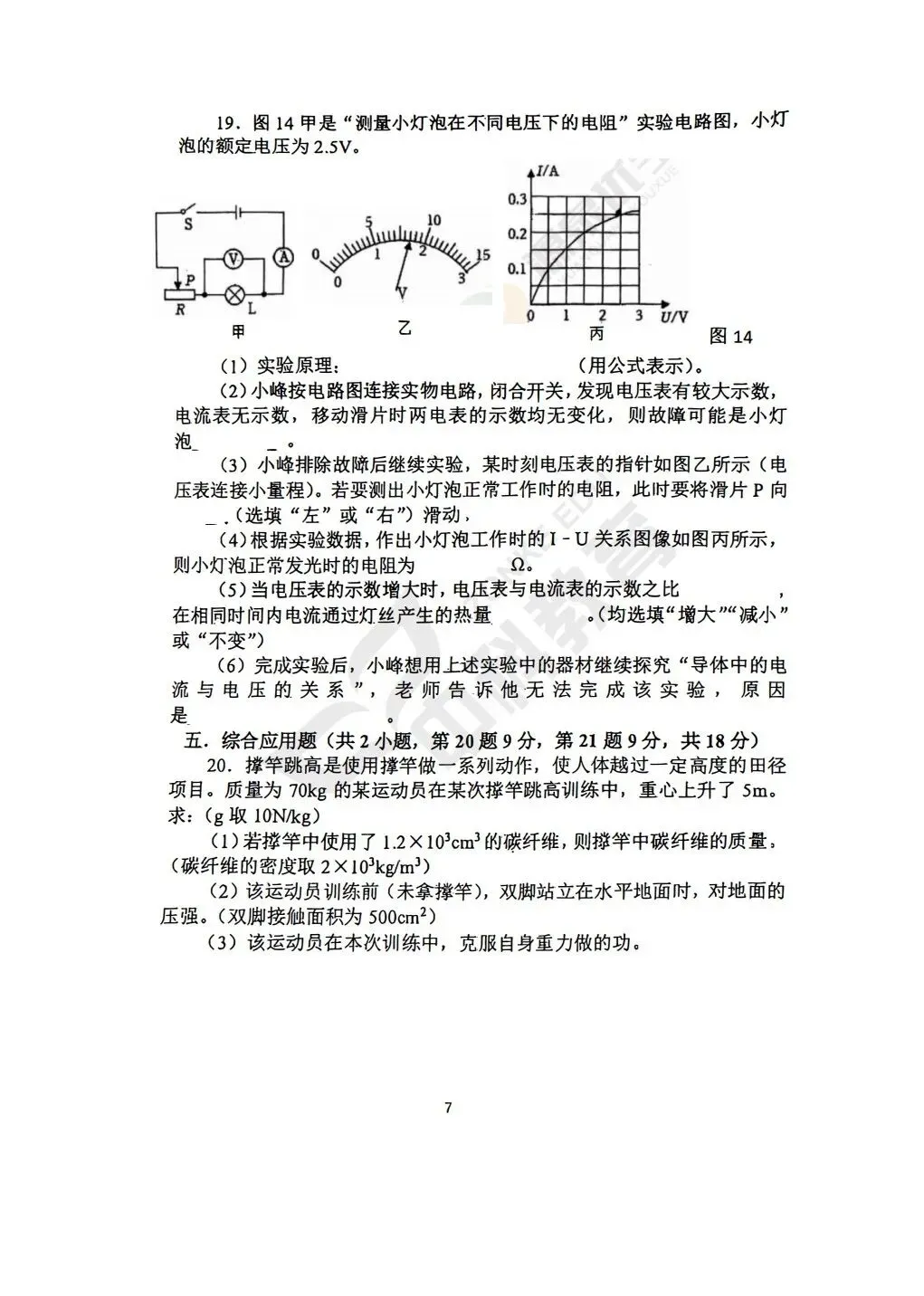 >2026春郑州市外国语中学九年级物理3月月考试题(含答案)