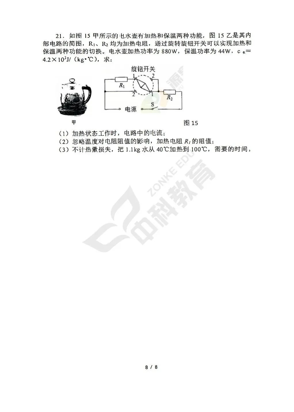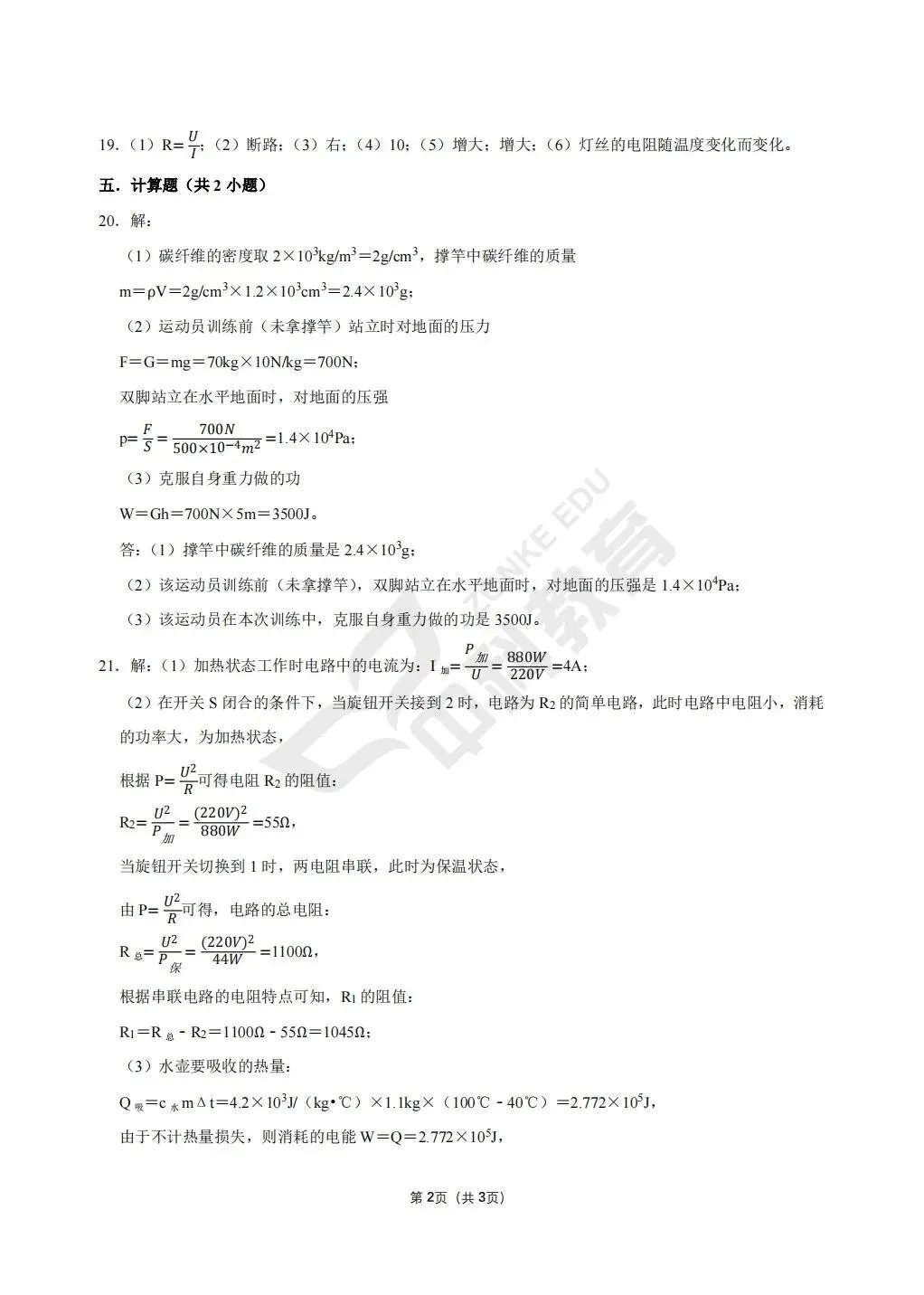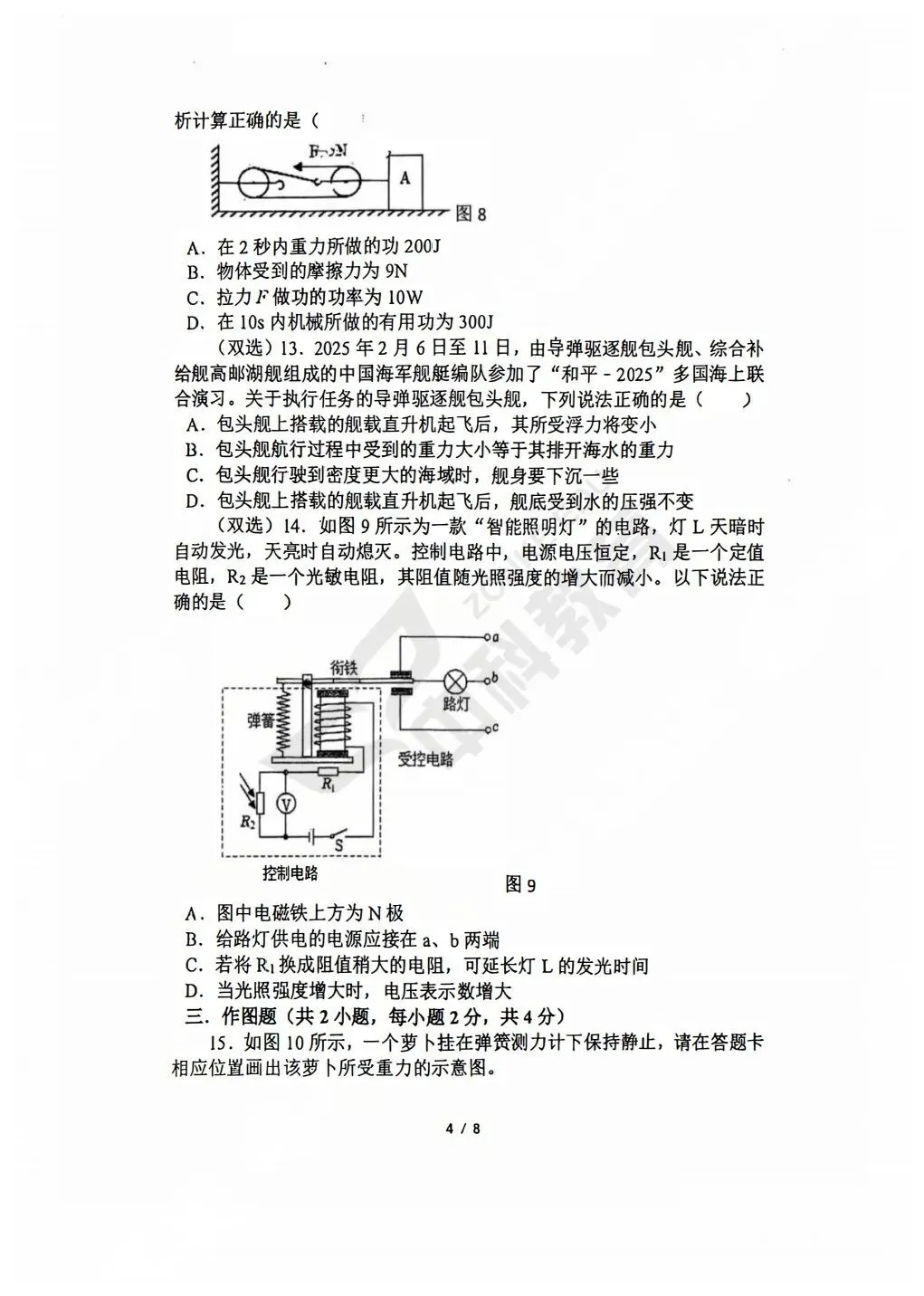 2026春郑州市外国语中学九年级物理3月月考试题(含答案)