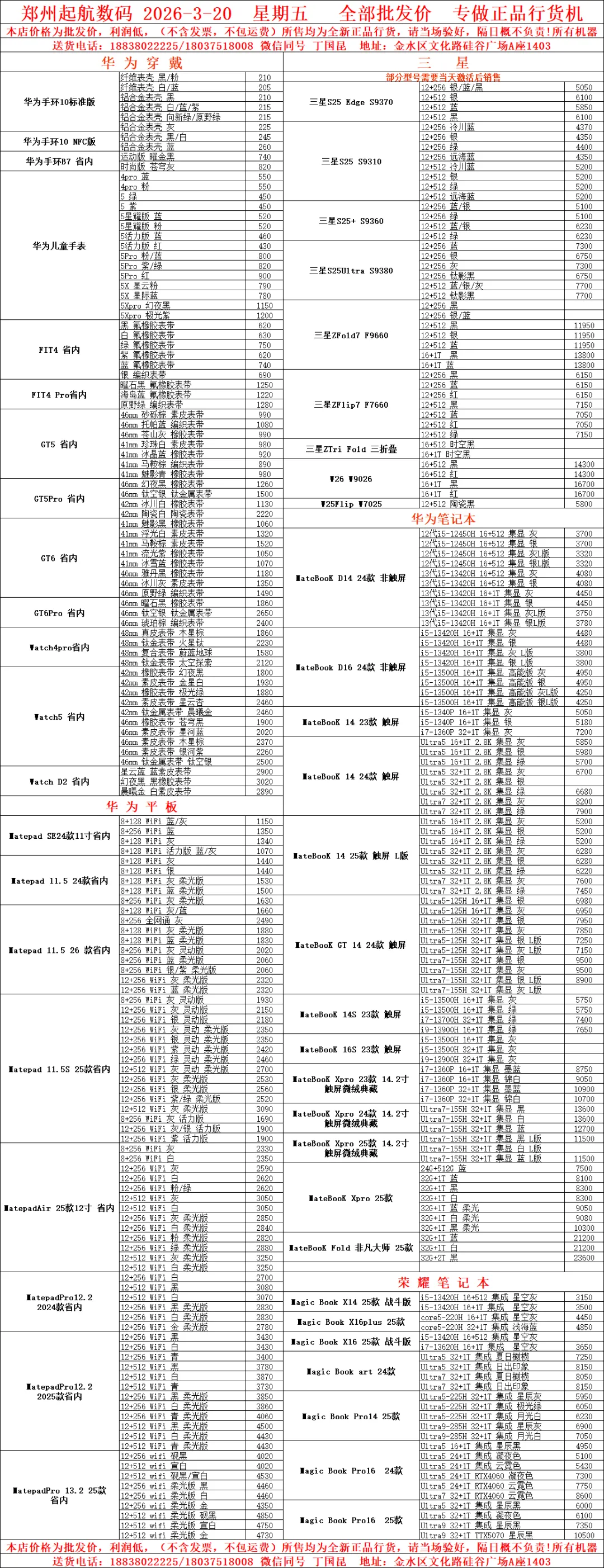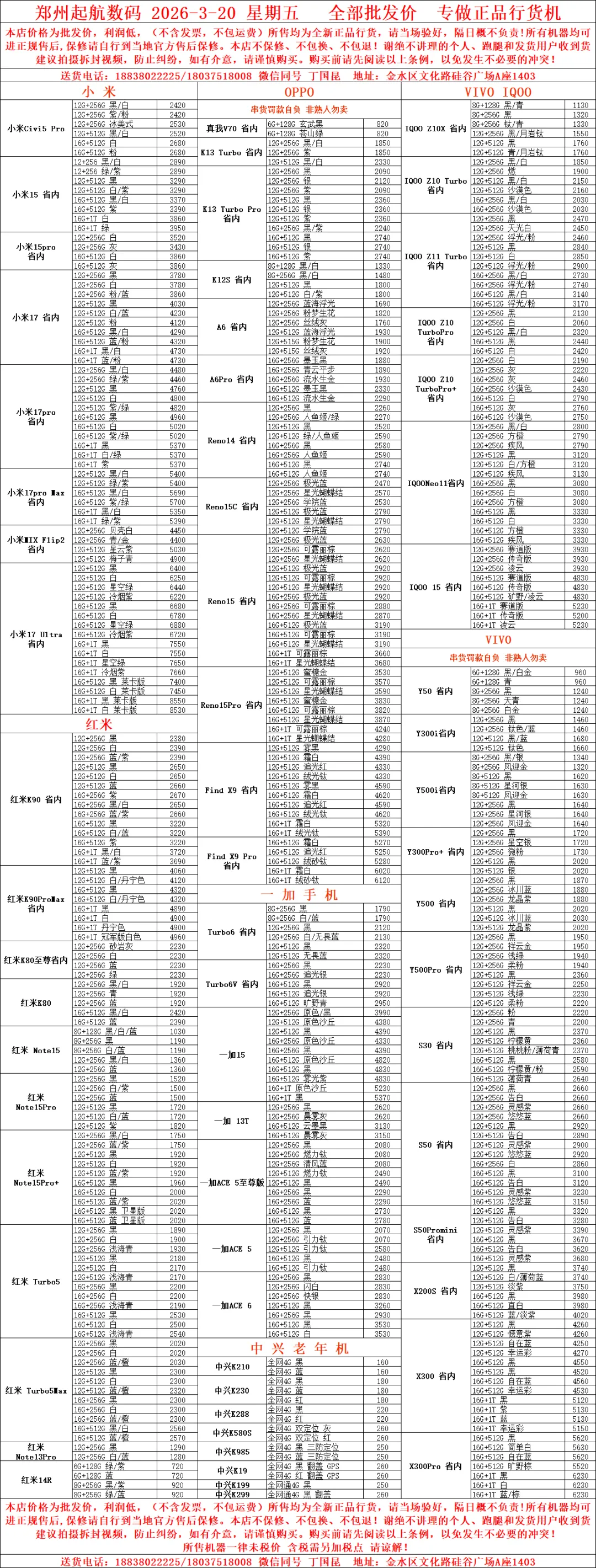 每天手机最新行情 请关注微信每日推送微信公众号:郑州起航数码公司地址:郑州市金水区文化路82号硅谷广场A座1403