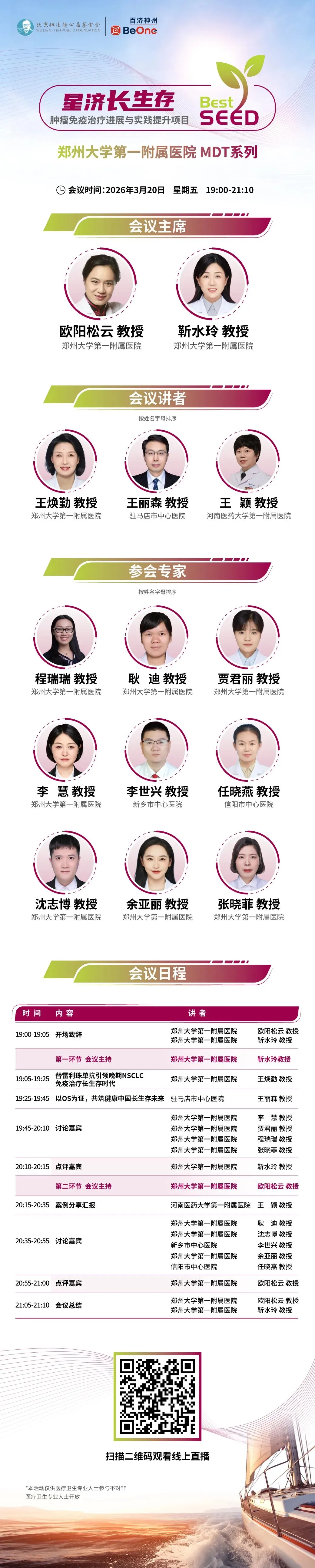 >3月20日 19:00 郑州大学第一附属医院(欧阳松云 教授&靳水玲 教授) 肺癌肿瘤诊疗能力提升学术项目-Best SEED