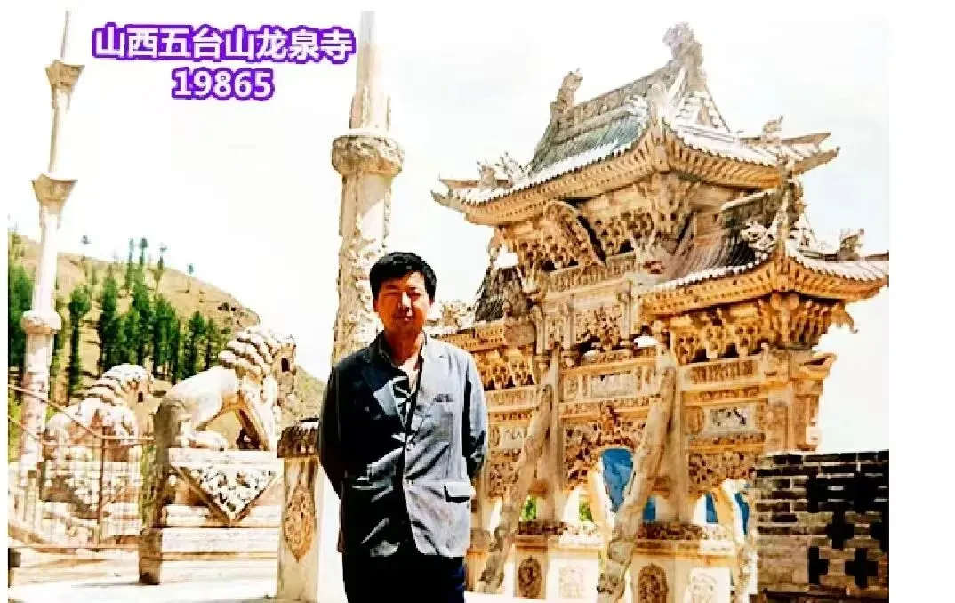 五台山景区的面积非常大,据说周边三十多公里五个大的山峰上分布着大的庙宇群就有三十六处,我们首先去了最近的龙泉寺,这里的庙宇规模宏大,山门的牌坊、金水桥、狮子和经幡柱都是汉白玉制作的,据说这里是北宋年间杨家将的家庙。1986年五台山的旅游开发刚刚起步,原来被封闭保护的区域逐渐打开了通路,在这个寺院里只有一个和尚蹲在院里拔草,大殿的门窗显得很陈旧,佛殿里的尘土也没有清除,我询问这位和尚:他说“关闭几十年了,才开门打扫呢。”我听出他是我们平凉地区六盘山西边人的口音,就问“你是哪里人?”他回答“甘肃人。”我直接问他“你是静宁那个公社的?”“嗷,你咂摸晓得我是静宁人?”我笑着说“我能掐会算么”。