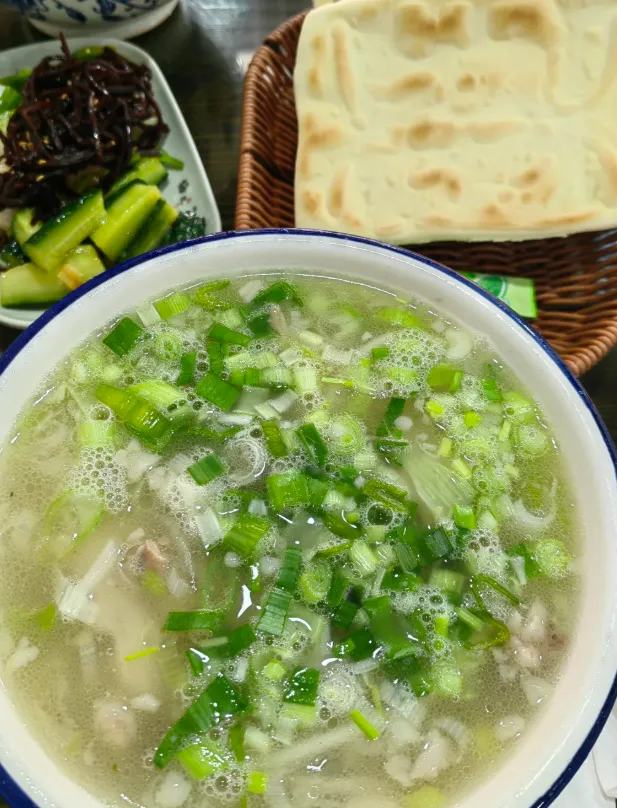 我喜欢牛羊肉泡馍。先用老汤把牛羊肉煨到酥烂,再把手掰的馍下进汤里,配粉丝、糖蒜、香菜。关键不是馍多软,而是吸汤后还有一点筋骨,筷子一挑,热气扑脸,胃就踏实了。
