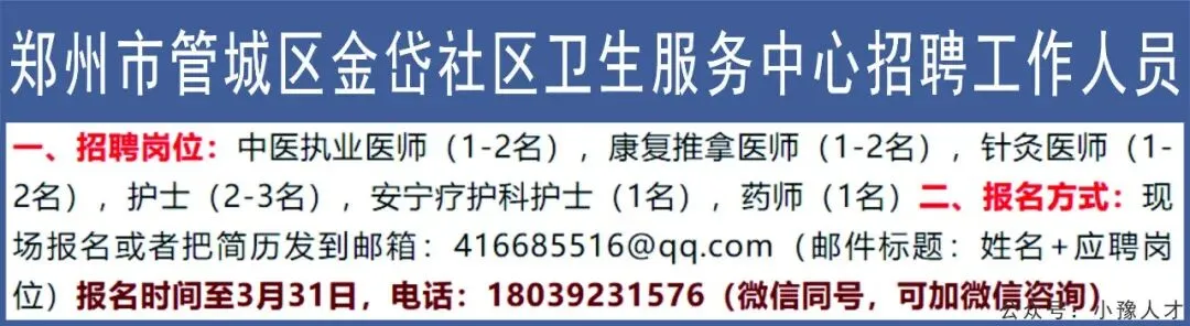 >郑州市管城区招聘工作人员【至3.31】
