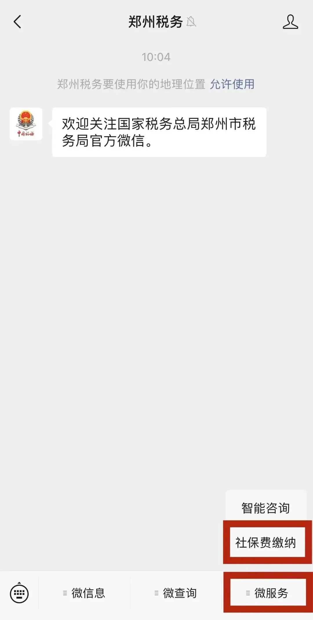 关注“郑州税务”微信公众号,点击“微服务”→“社保费缴纳”→“居民医疗保险缴费” | ||