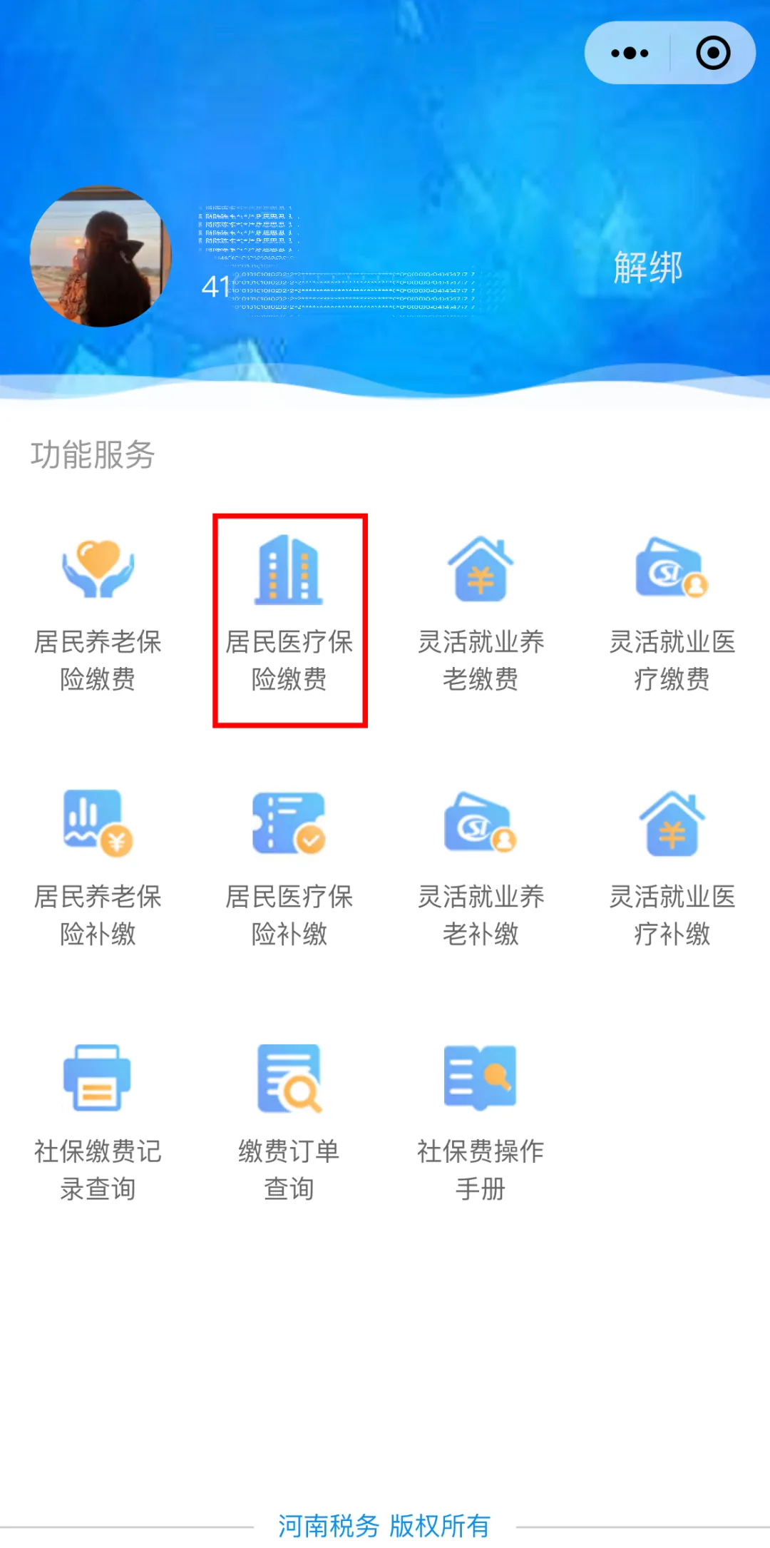 搜索“河南税务”小程序,登录后选择“居民医疗保险缴费” | ||