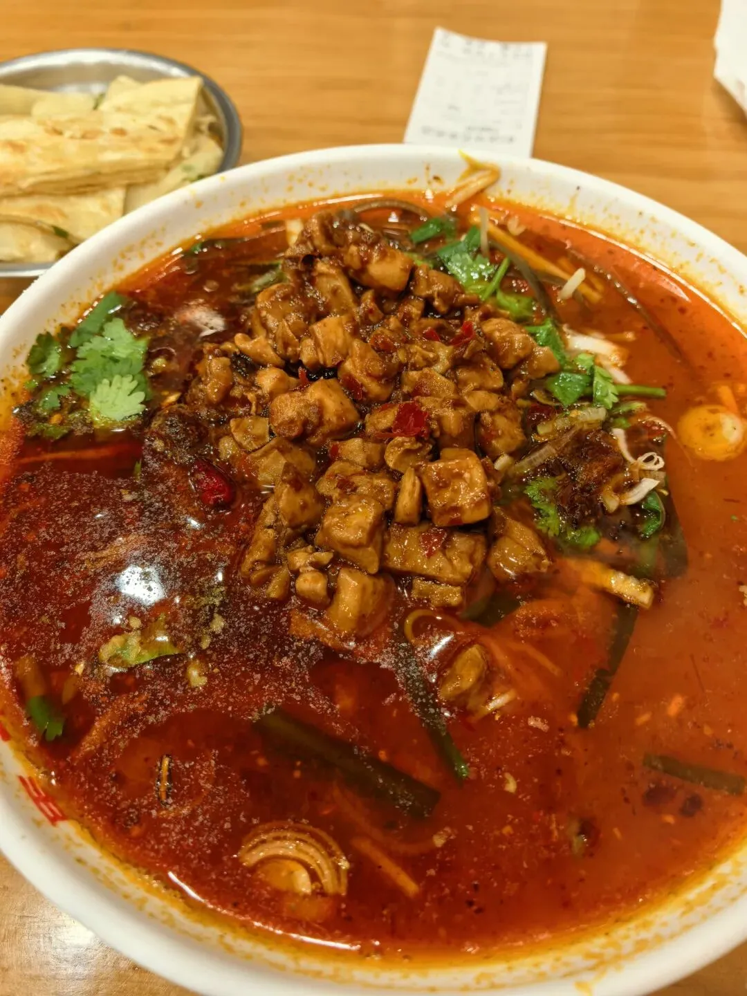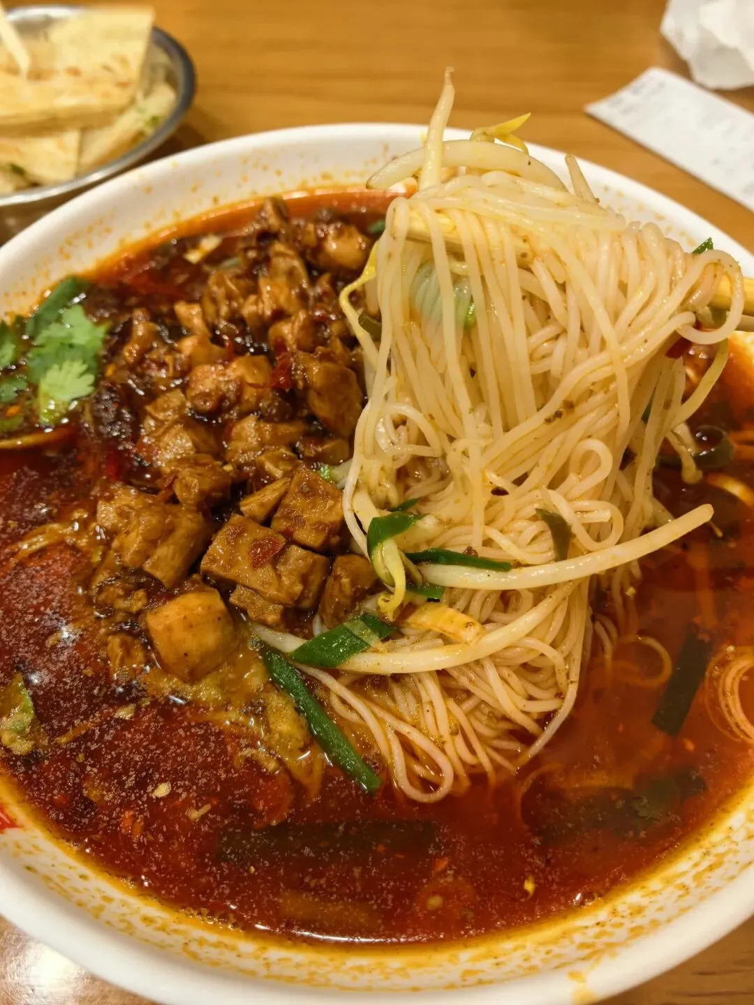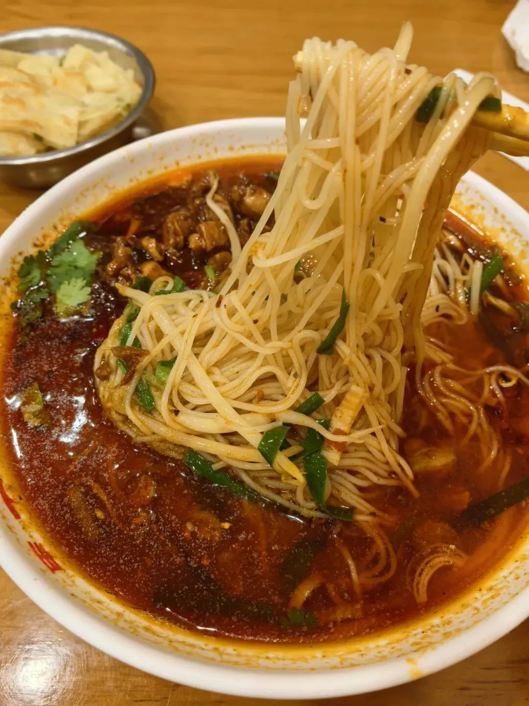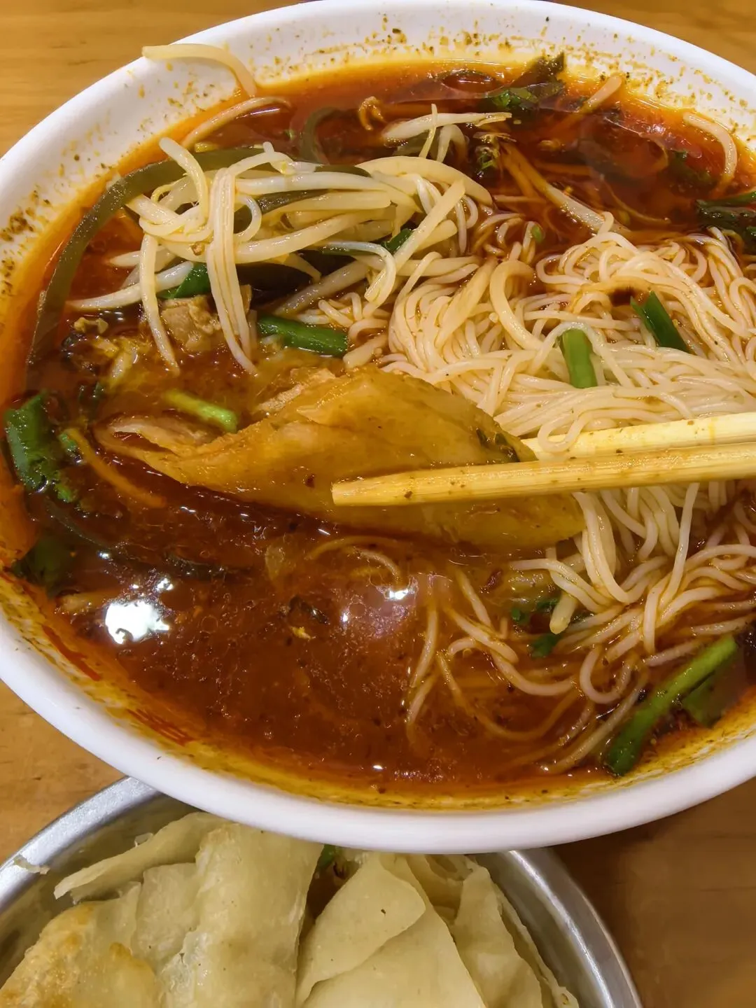 他家的鸡肉麻辣米线,味道特正,入口麻辣鲜香,米线不软不硬,调味正好。