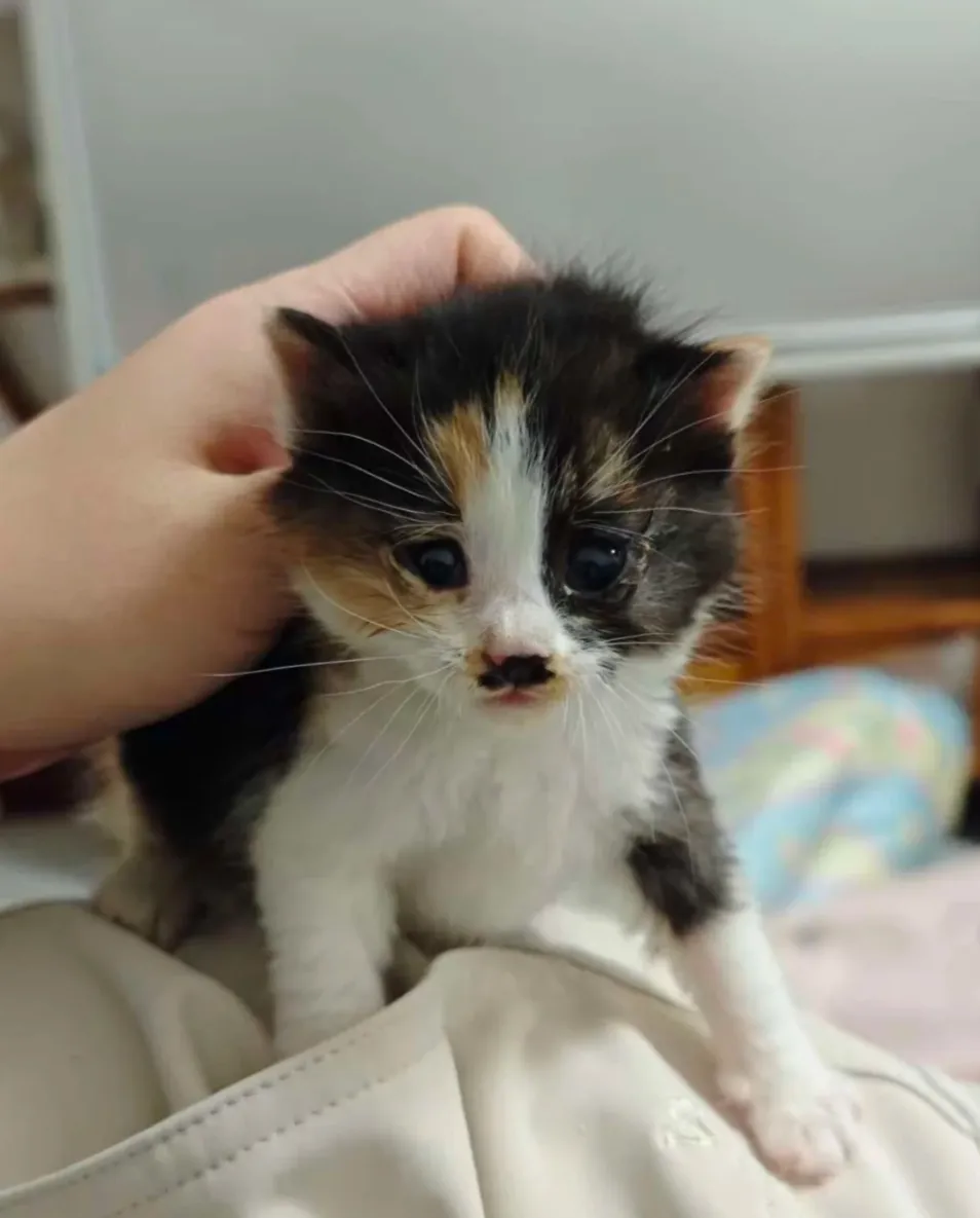 宠物信息:真的太可爱了,性格无敌好,仅有的一只小三花猫,一个多月大,健健康康,是救助人在草丛里捡的,我安置的,帮猫咪找一个有爱的家!