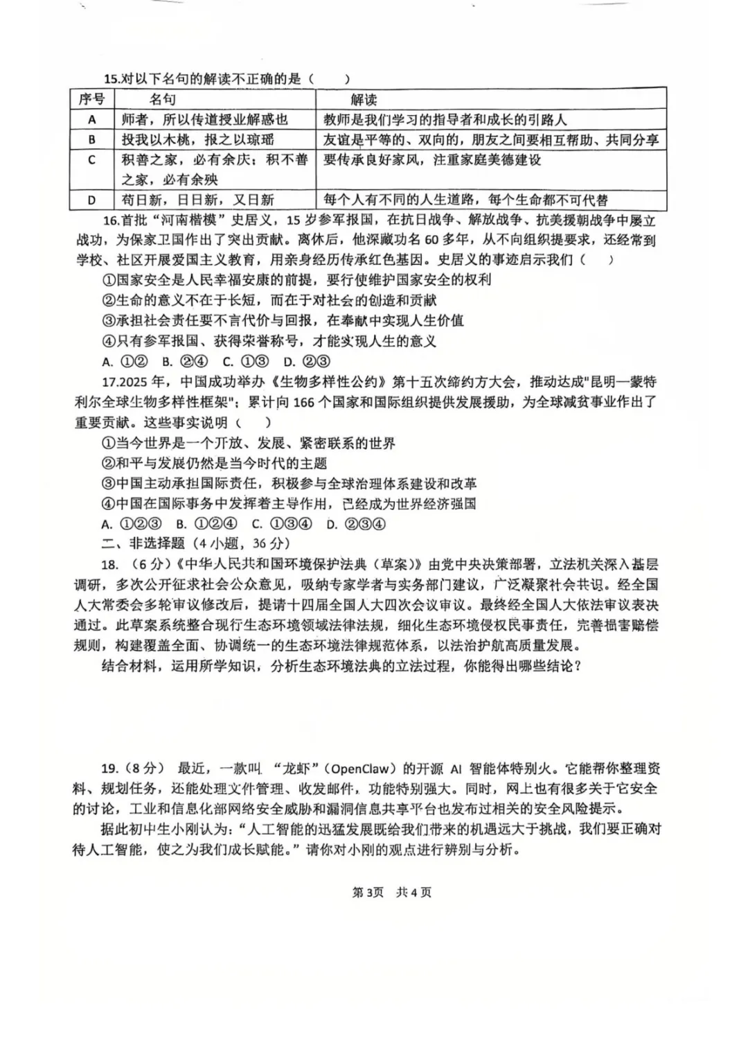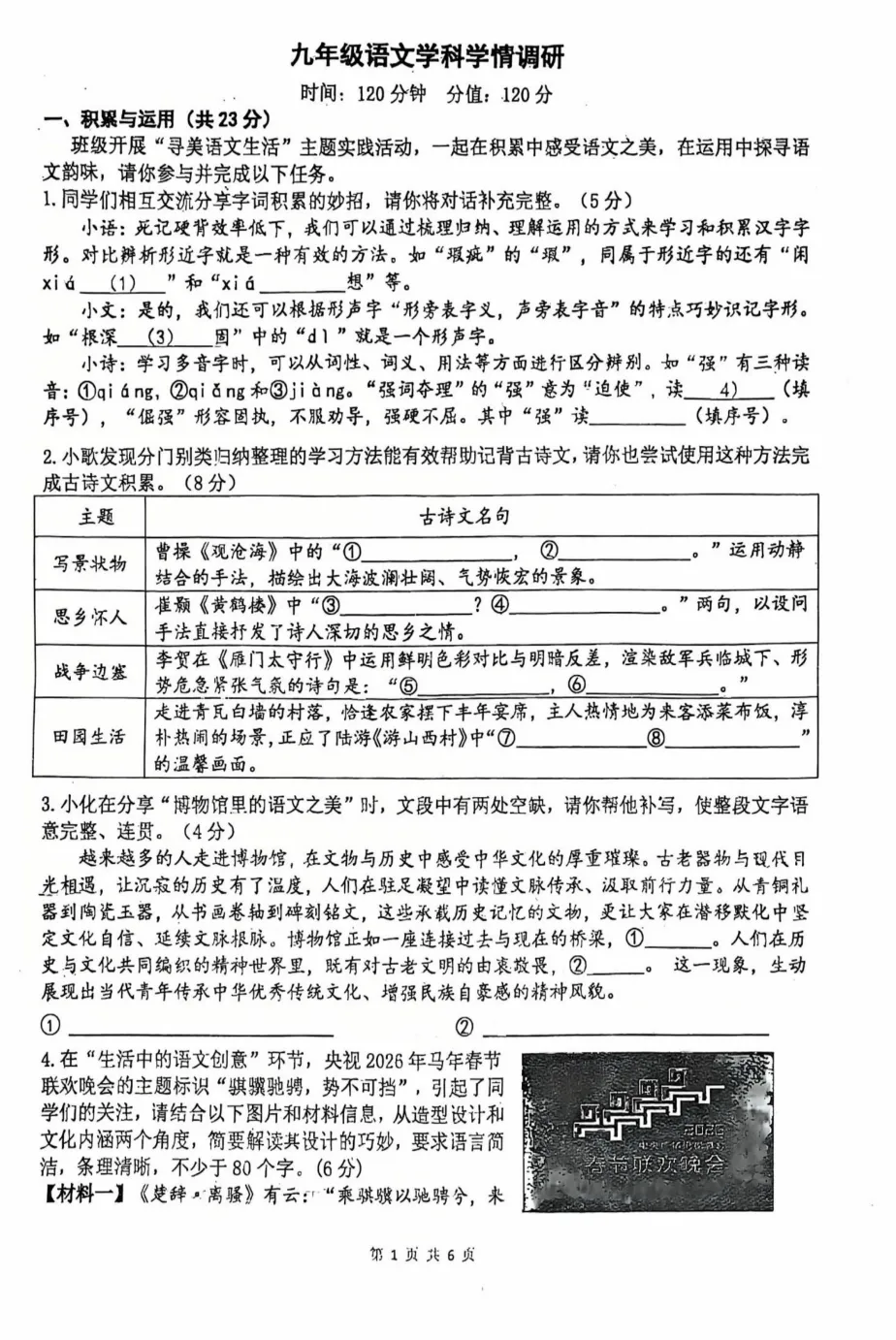 【郑外3月模考】2026年郑州外国语中学九年级3月学情调研试卷(七科试卷)