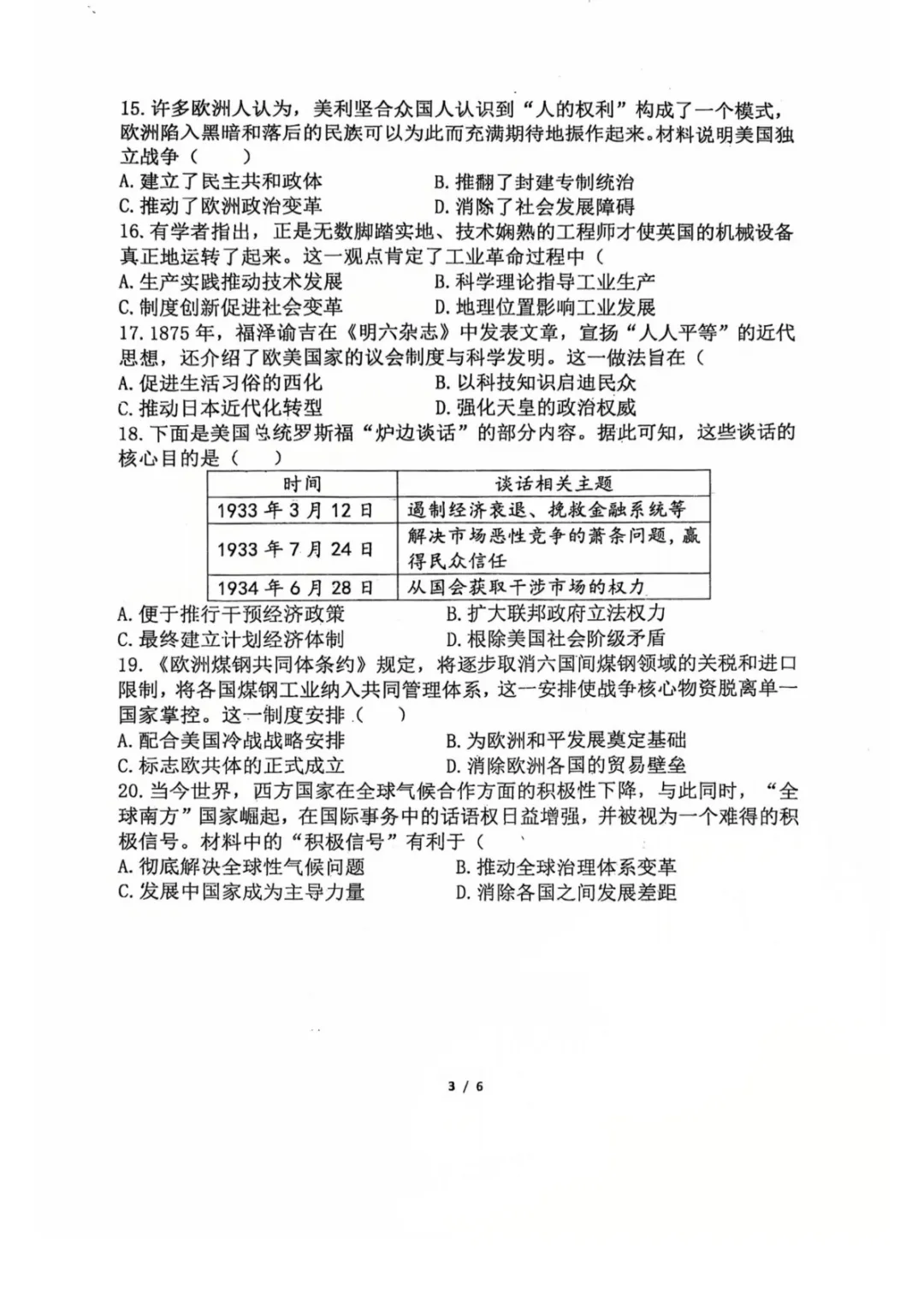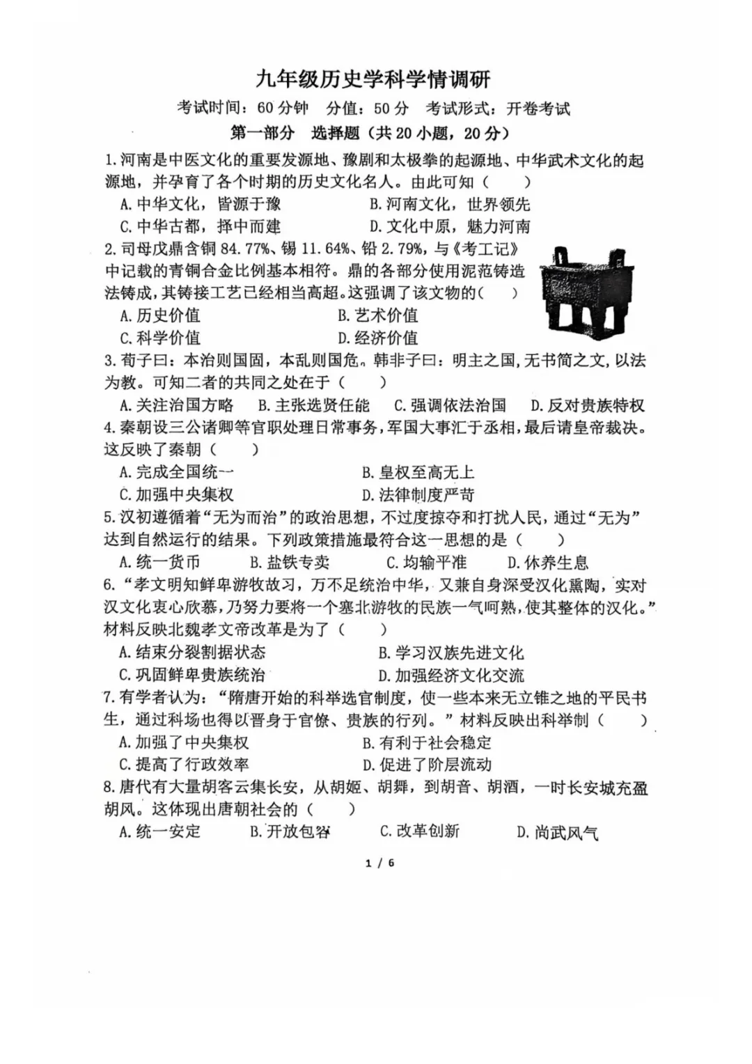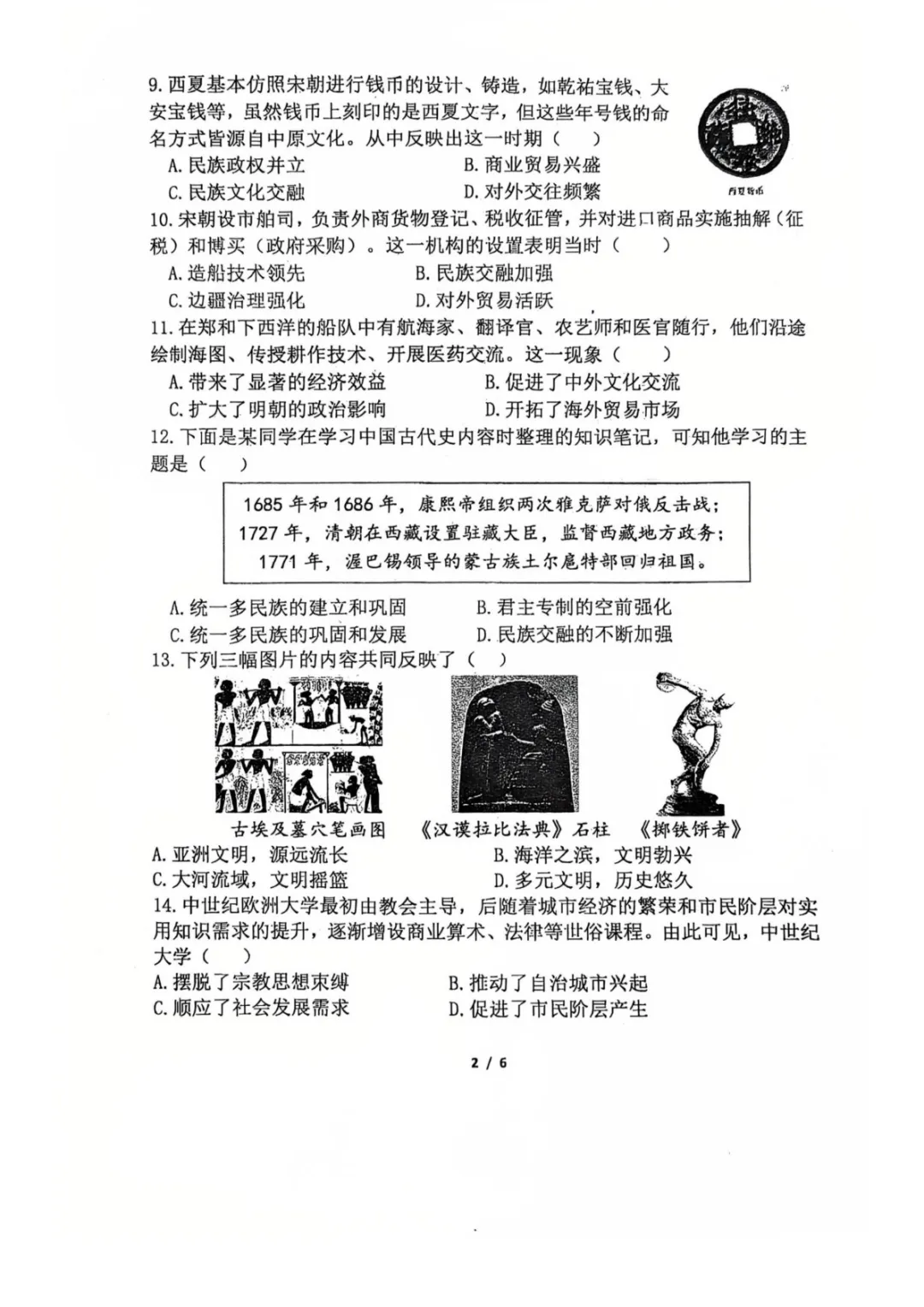 【名校新卷】2026郑州外国语中学九年级历史学科学情调研(可下载)