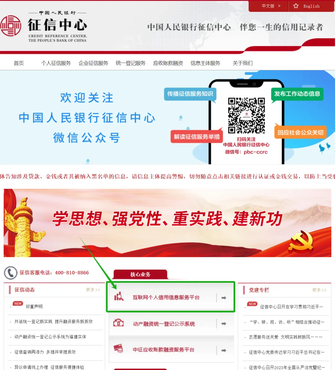 登录中国人民银行征信中心www.pbccrc.org.cn