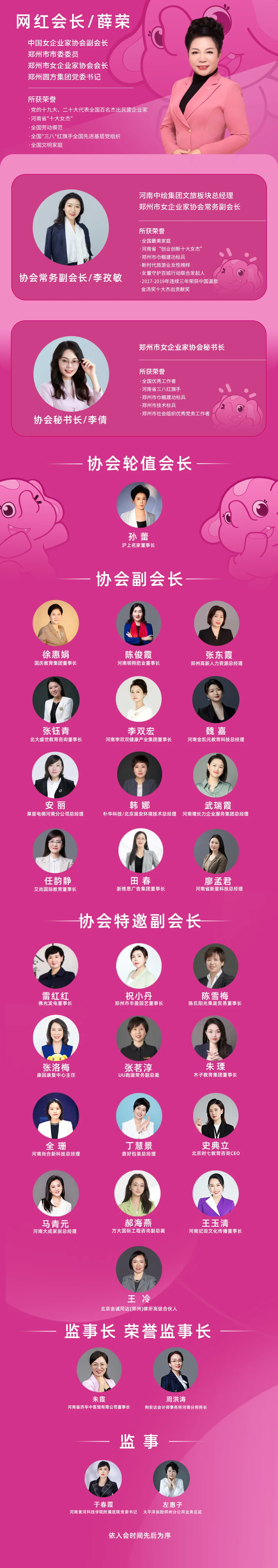 郑州市女企业家协会(ZZAWE)成立于2010年12月31日,是经郑州市社会组织服务中心注册登记,具有社团法人资格、由郑州市各行业中的优秀女企业家自愿组成的非营利性社团组织,是中国女企业家协会的团体会员,业务主管单位为郑州市妇女联合会,是联系服务全市女企业家的桥梁和纽带,郑州市女企业家协会目前拥有会员企业500多家,其中专精特新企业85家,会员企业年营业总额超579亿元,纳税总额超16亿元,员工总数超13万人,其中女性员工占一半以上,聚集了郑州市工商、文旅、金融、科研、生物医药等各行业杰出的女高级经营管理人才、优秀的女企业经营者和杰出的创业女性带头人。