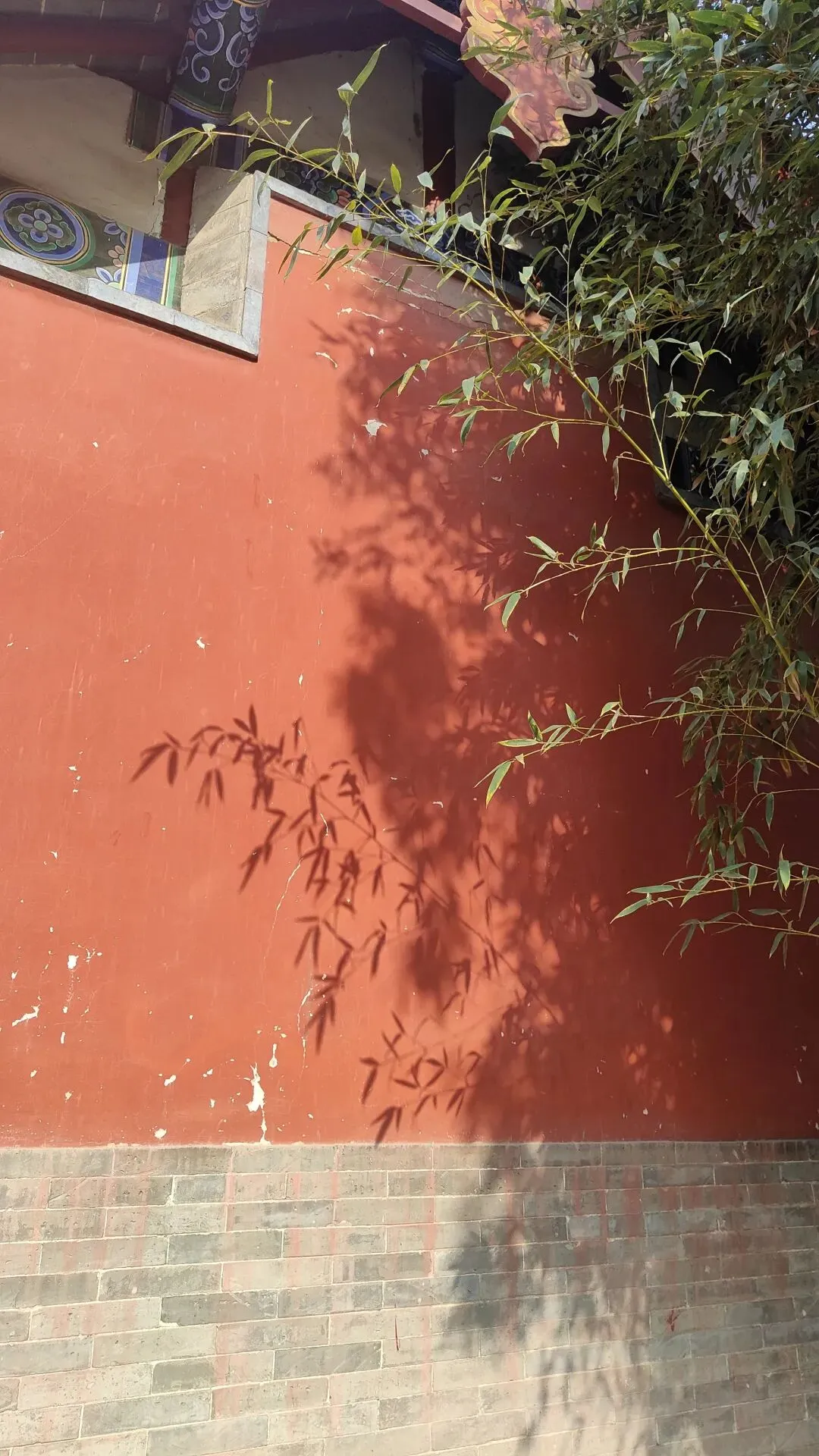 竹影在红墙上留下国画般的印记一眼看去格外让人舒服和放松在我闲游期间也看到了几位着汉服拍照的小姐姐古建加古装的组合在午后的阳光下形成了一副美妙的画卷