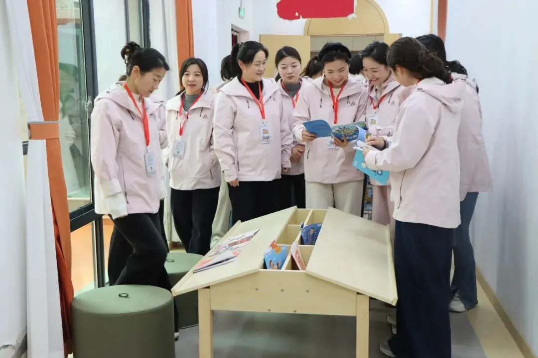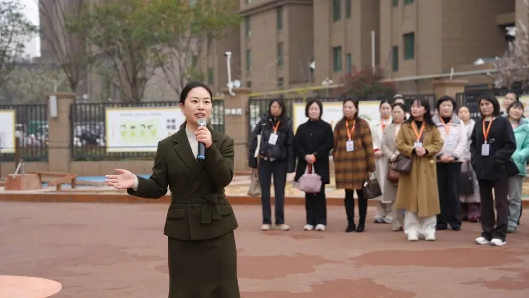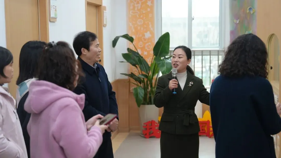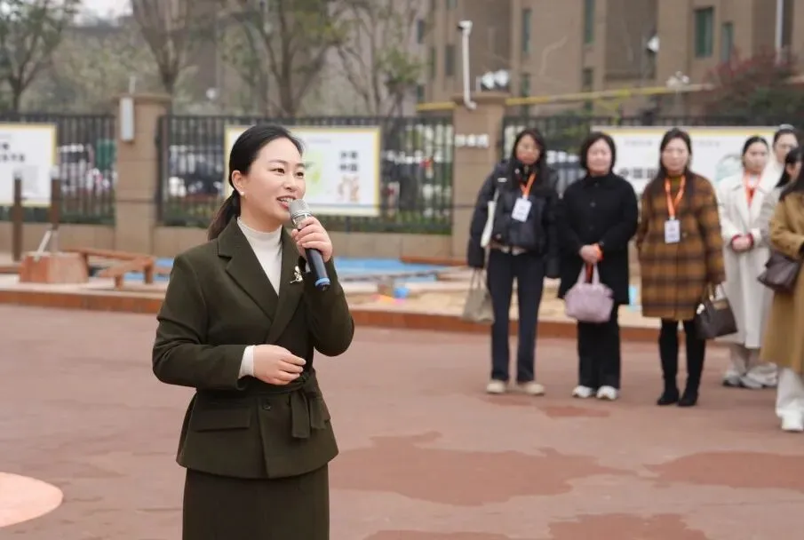 园本教研环节,园长鲁欢歌首先作专题汇报。她系统阐述了幼儿园“童蒙养正,培根固本”的办园理念,详细介绍了园本教研的组织架构与运行机制,并以视频形式展示了园所日常教研活动的真实场景——从小组研讨的思维碰撞到实地探索游戏玩法后反思的深度对话,研讨室里老师们总结思考、梳理经验,将实践探索升华为教育智慧。一帧帧画面记录了教师团队在真问题中真研究、在真体验中真成长的专业样态。