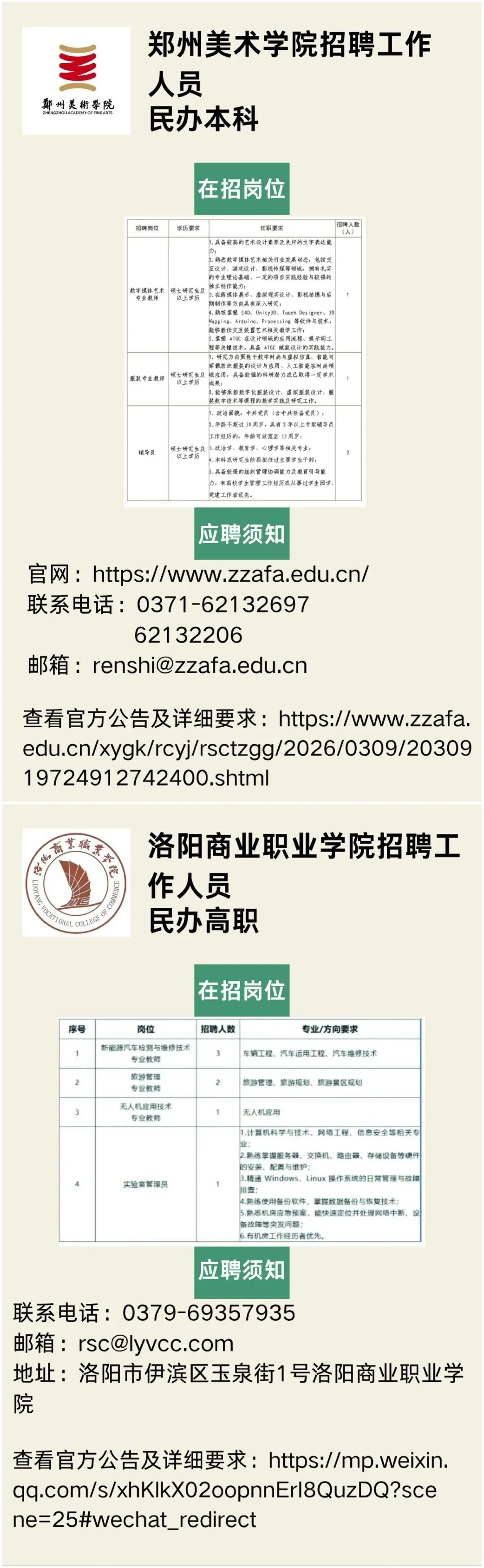 来源|郑州美术学院,洛阳商业职业学院。(声明:“河南省大中专毕业生就业创业促进会”微信公众号刊载此文,是出于传递更多信息之目的。若有来源标注错误或侵犯了您的合法权益,请及时与我们联系,我们将及时更正、删除或依法处理。)