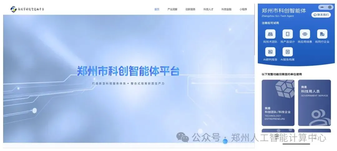 【重磅发布】全国开创性的政务应用探索,开启科技创新新篇章!网页+小程序双端联动,DeepSeek大模型驱动郑州市科创智能体正式上线