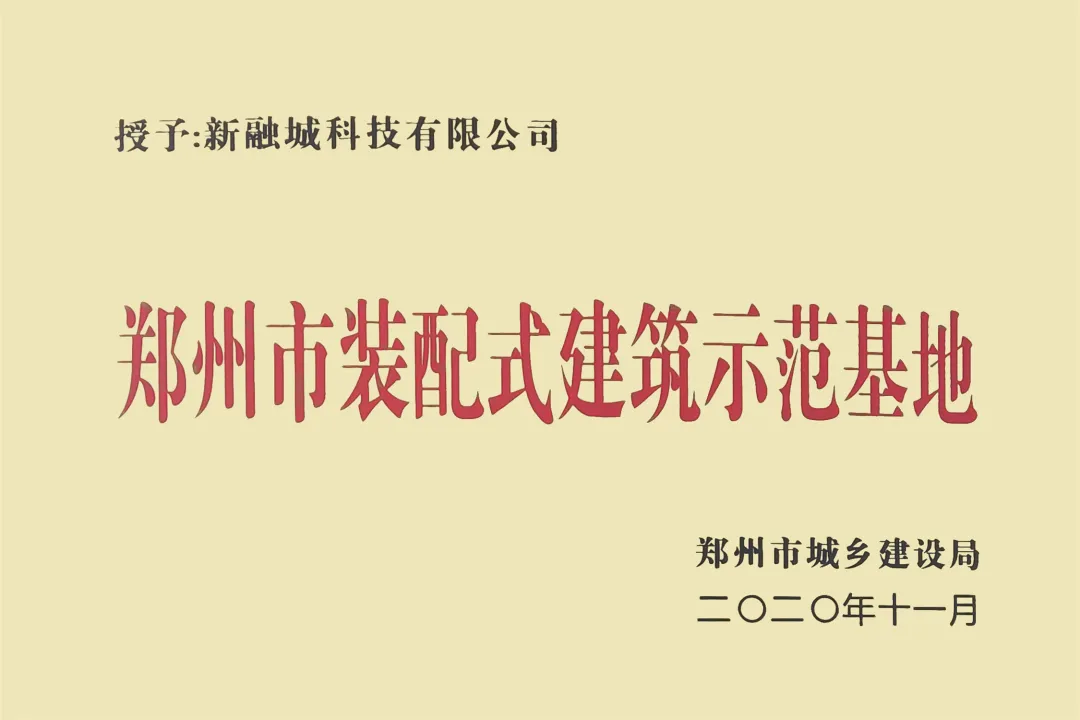 新融城科技以“融科技智慧,焕城市新颜”为使命,紧跟工业4.0浪潮,致力于推动建筑工业化、信息化、智慧化,“赤诚智造、匠心筑城”,不断向社会呈现工业与科技结合的建筑之美;全面深化卓越绩效管理与精益六西格玛管理,导入ERP+MES+PLM先进企业管理系统,持续提高公司工作效率与综合水平,先后通过了质量(ISO9001)、职业健康安全(ISO45001)、环境(ISO14001)管理体系国际标准化认证;新融城科技专注科研探索,与清华大学、郑州大学、华北水利水电大学、河南理工大学等知名高校建立校企产学研合作,以创新驱动引领高质量发展,确保在技术标准和施工工艺上都达到领先水平,不断延伸品质人居的无限疆域,相继被认定为“郑州市装配式建筑产业基地”、“河南省装配式建筑产业基地”、“河南省装配式建筑行业产业发展协会会员单位”,并被多家知名建筑和房地产企业授予“优秀供应商”荣誉称号。