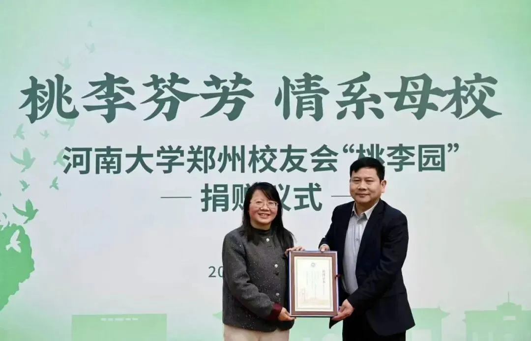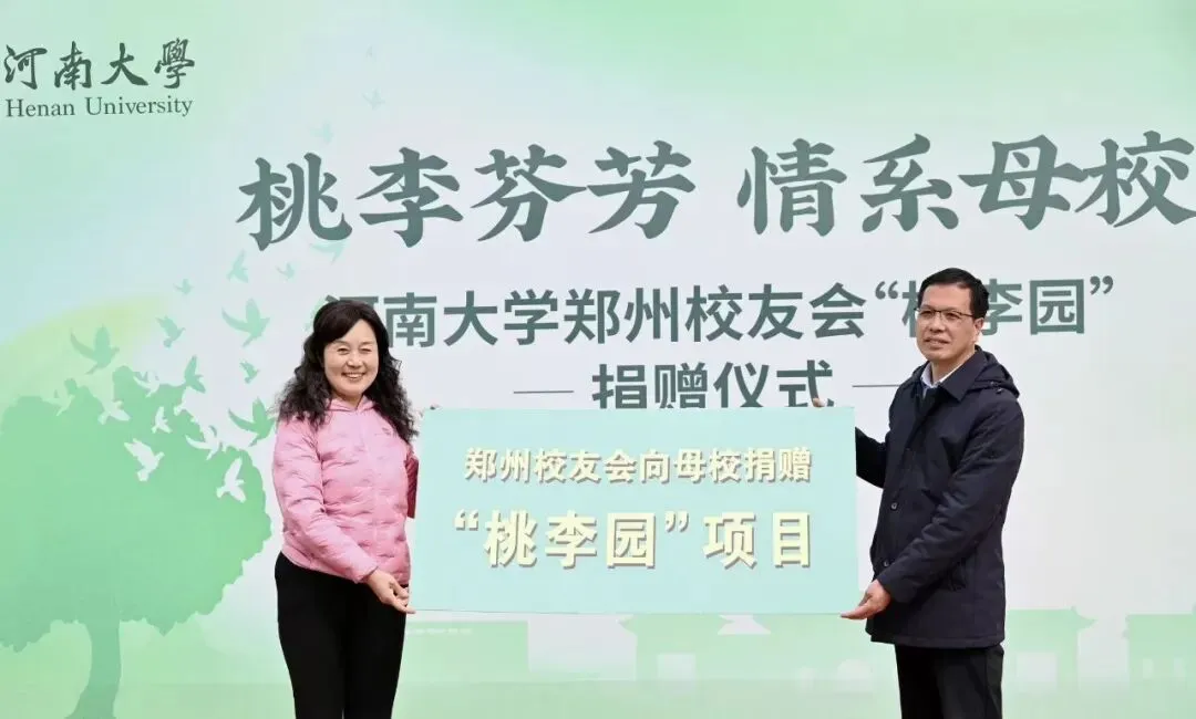 3月19日,河南大学郑州校友会“桃李园”捐赠仪式在郑州校区举行。郑州校友会会长张占仓、执行会长兼秘书长李传荣、副会长郭建伟,河南大学龙子湖校区综合管理办公室主任刘香宇、校友工作办公室副主任骆春丽及校友代表齐聚现场,共叙校友情谊,共为母校添绿,捐赠仪式由教育发展基金会副主任高欢主持。