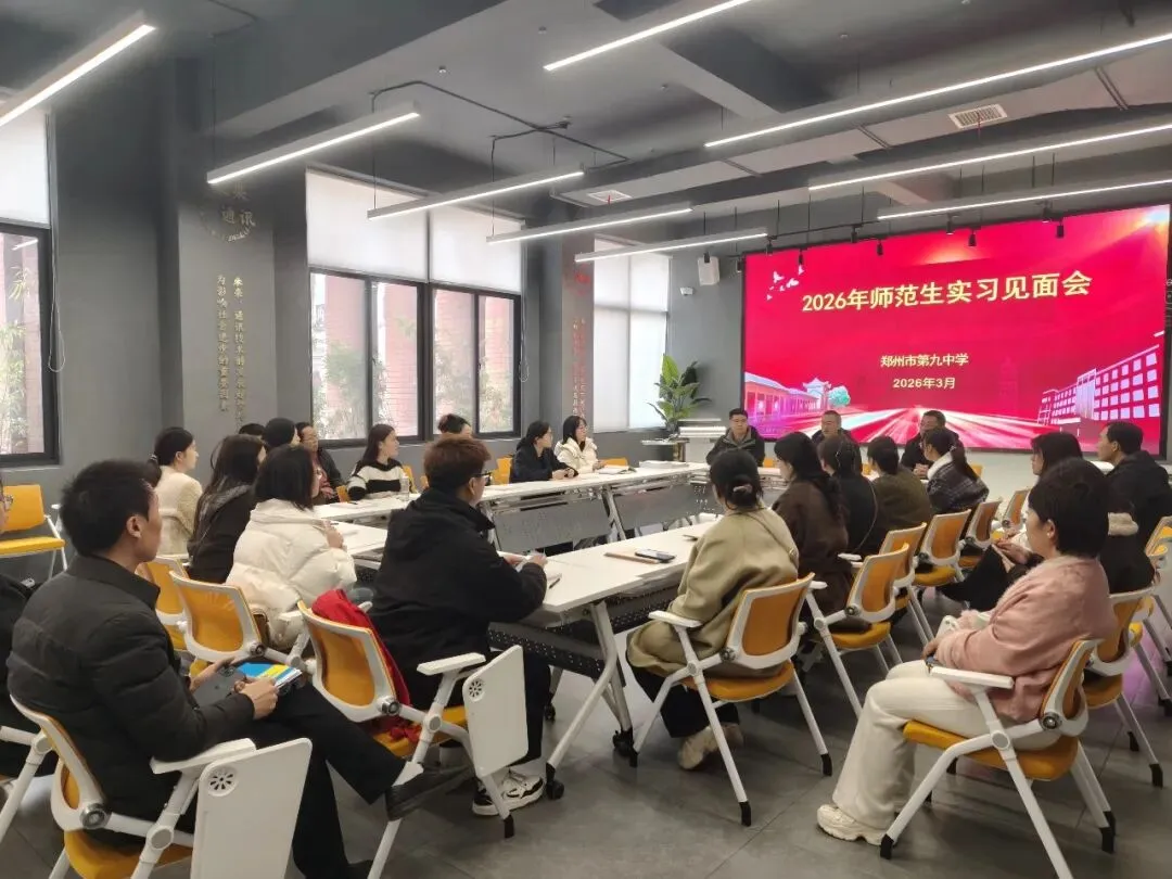 据悉,本次教育实习将从3月1 日持续至5月31日,涉及语文、数学、英语、政治四门学科,郑州九中为每位实习生配备了专属的学科指导教师与班主任指导教师,制定了完善的实习工作方案与成绩考核制度,从教学实践、班级管理、生活保障等多方面为实习生提供全方位支持。此次见面会的召开,不仅为实习生与学校搭建了良好的沟通交流平台,更明确了实习工作的目标与要求,为本次教育实习工作的有序开展奠定了坚实基础。郑州九中也将以此次实习为契机,深化与高校的合作育人模式,为培养新时代优秀教育人才贡献力量。