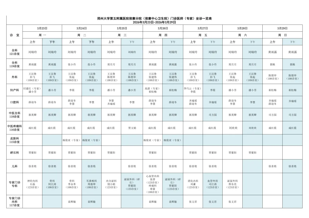 2026年3月23日-2026年3月29日门诊医师排班表