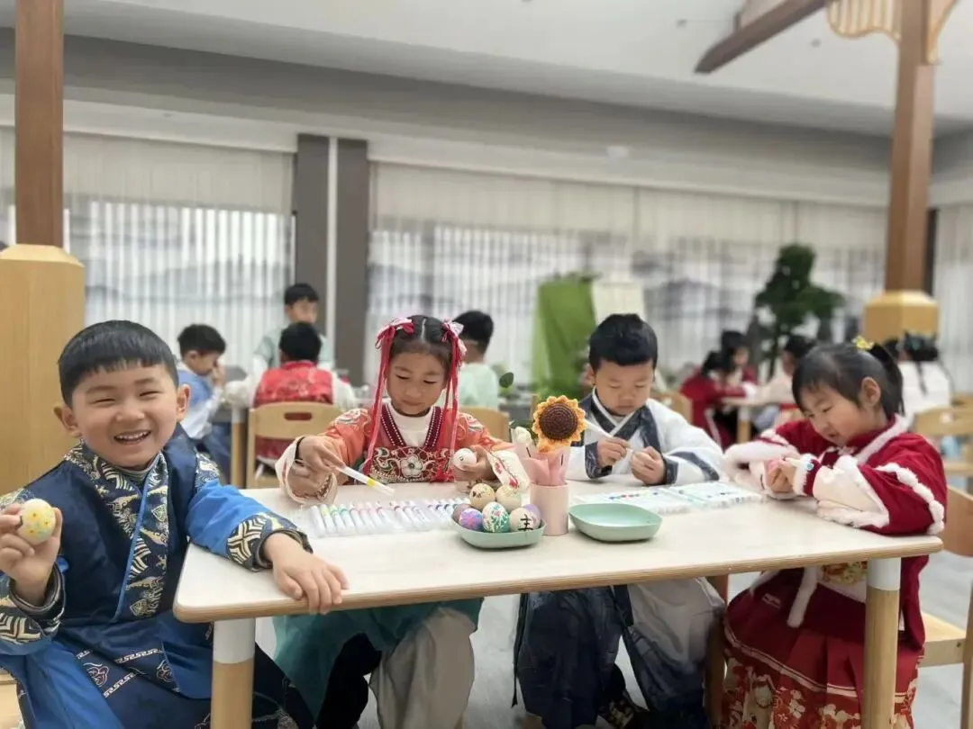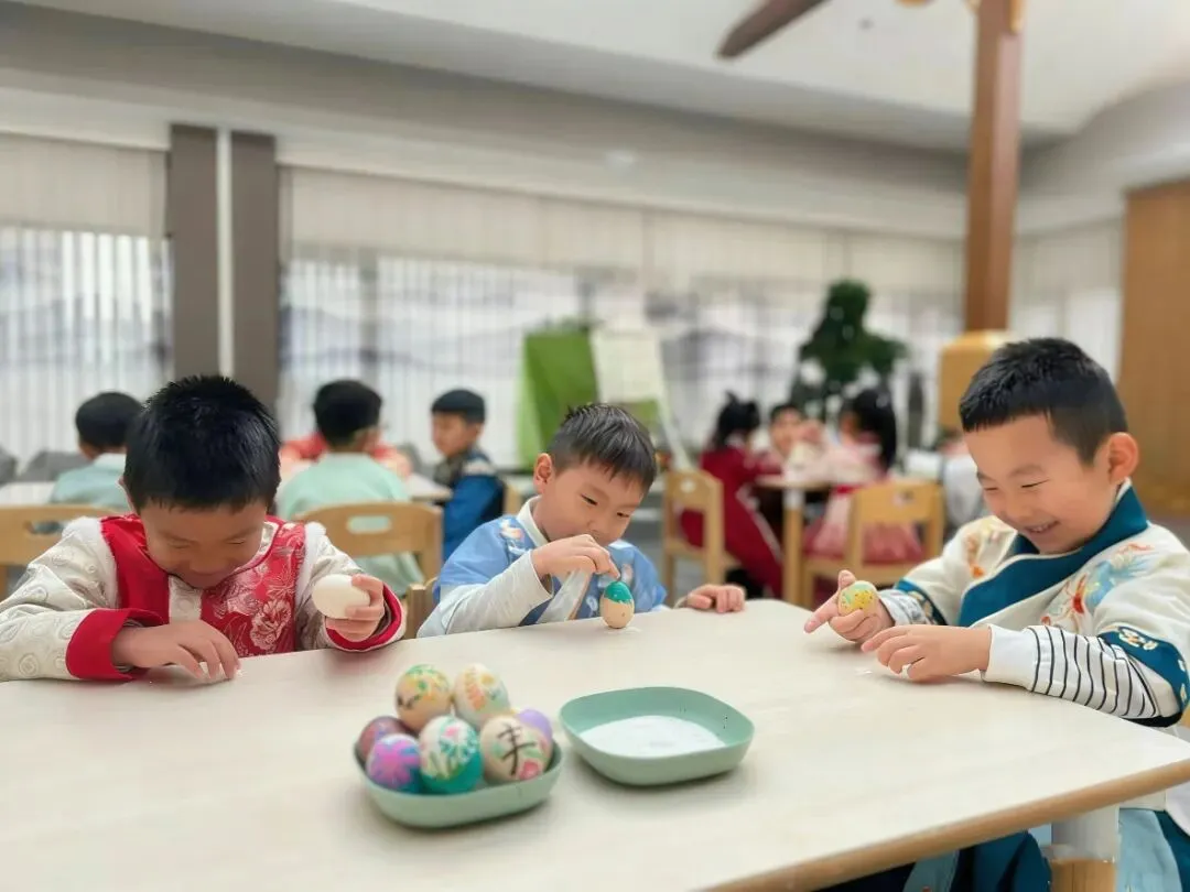 “春分到,蛋儿俏”是家喻户晓的民谚。润娃们选取光滑匀称的新鲜鸡蛋,轻轻尝试将它稳稳竖立在桌面。古人认为,春分昼夜均分、阴阳平衡,竖蛋成功寓意着万事和顺、吉祥如意。