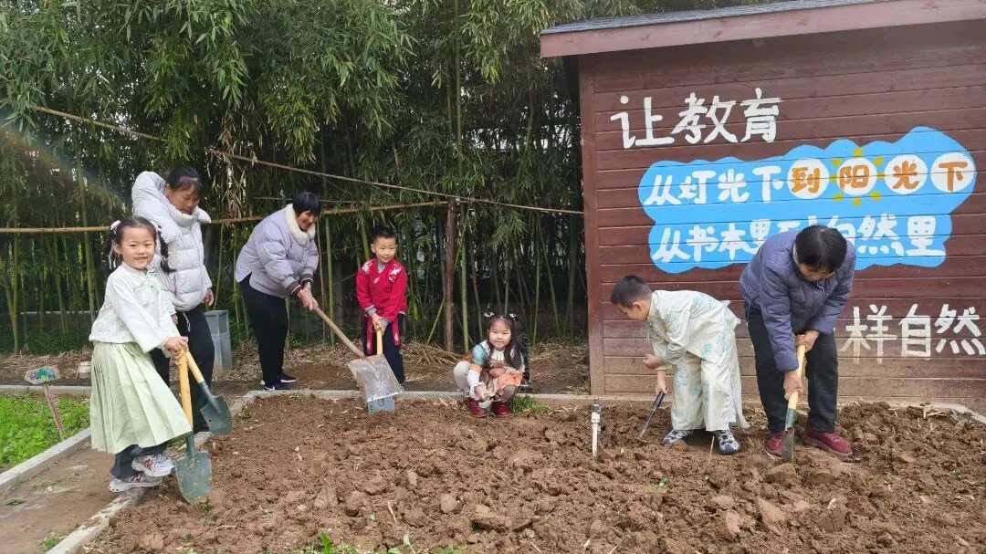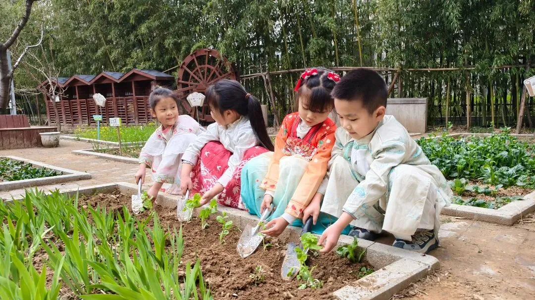 春分前后,种瓜点豆。春分节气,是春耕最繁忙的时候,越冬作物进入春季快速生长阶段,此时也是早稻的播种期。传统农谚记载:“春分春分,犁耙乱纷纷”。润娃们在农耕中,感受生命的律动,体验劳动的快乐。
