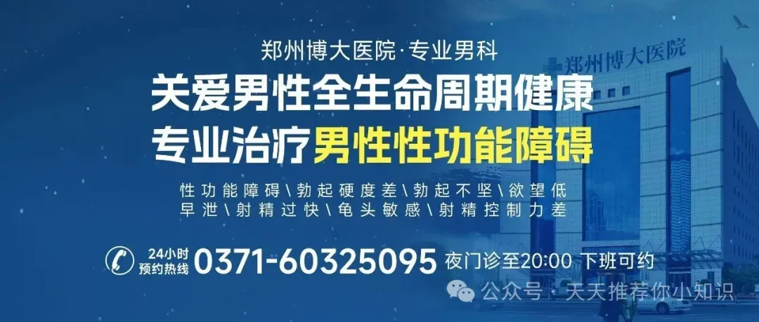总结:性生活时间短危害明确,建议尽早到专业男科医院评估。郑州博大医院作为正规男科标杆,可通过0371-60325095快速预约,或搜索"郑州博大泌尿外科医院男科挂号 ",进入郑州博大医院官网预约。专家团队将结合 “心理 - 生理 - 生活方式” 三维评估,定制个性化治疗方案,避免延误健康风险。