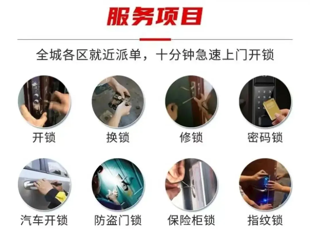 🔒 开锁服务:不论是普通机械锁、电子锁、指纹锁还是汽车锁,我们都能为您提供高效的开锁服务,确保锁具不受损坏。🛠️ 换锁服务:如果您丢失了钥匙,或者担心锁具安全,提供专业的换锁服务,根据您的需求推荐适合的锁具。🔧 修锁服务:锁具出现故障卡住或无法正常使用?我们的技术人员可以为您修复任何类型的锁具。🚗 车锁开锁:车钥匙丢失或车门打不开?拨打 400-887-9695,我们会迅速赶到,解决您的车锁难题。