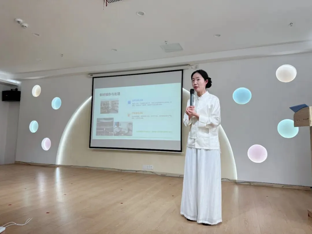 后勤主任围绕食材严选、营养配餐、食品安全、流程规范、食谱公示五大维度,全面介绍幼儿园膳食管理工作。从源头把控到精细烹饪,从科学搭配到卫生管控,全方位公开透明,让家长直观了解孩子每一餐的安心与用心。