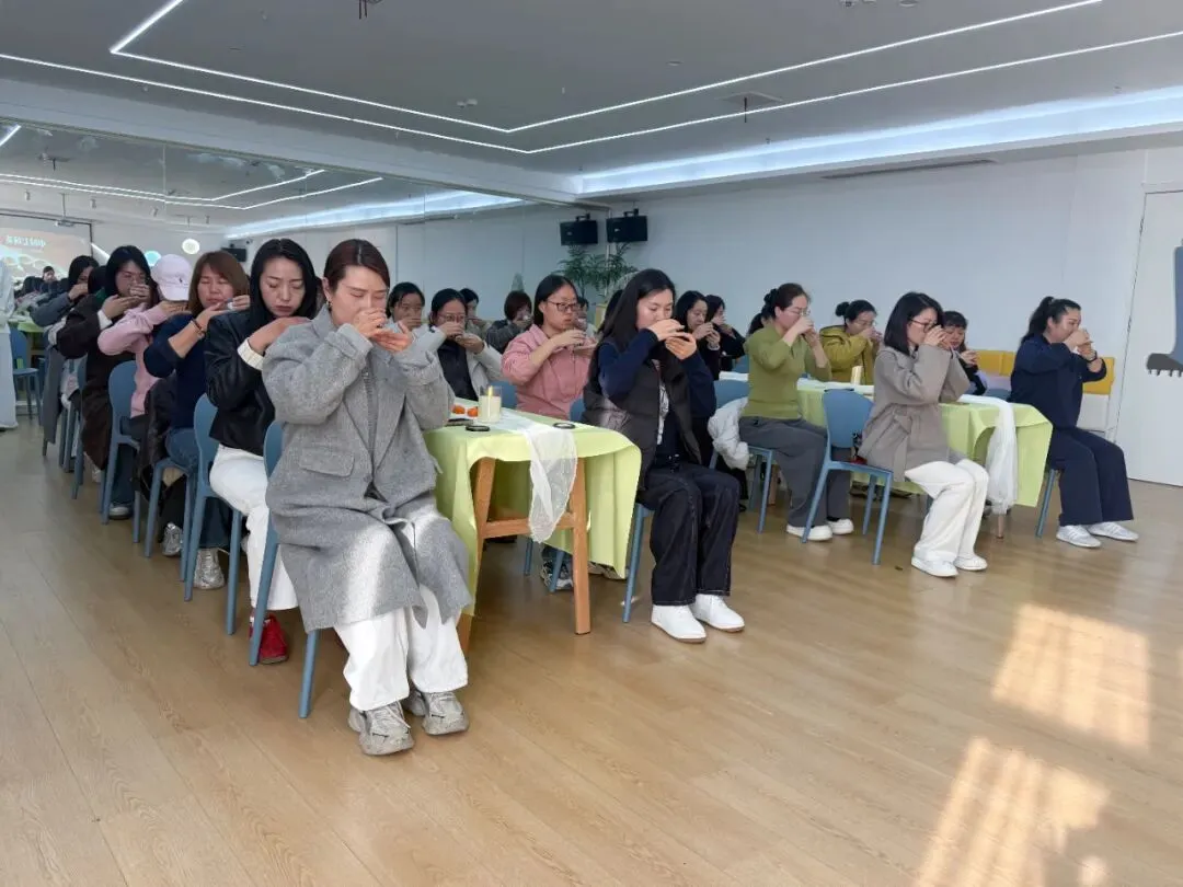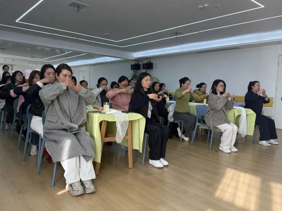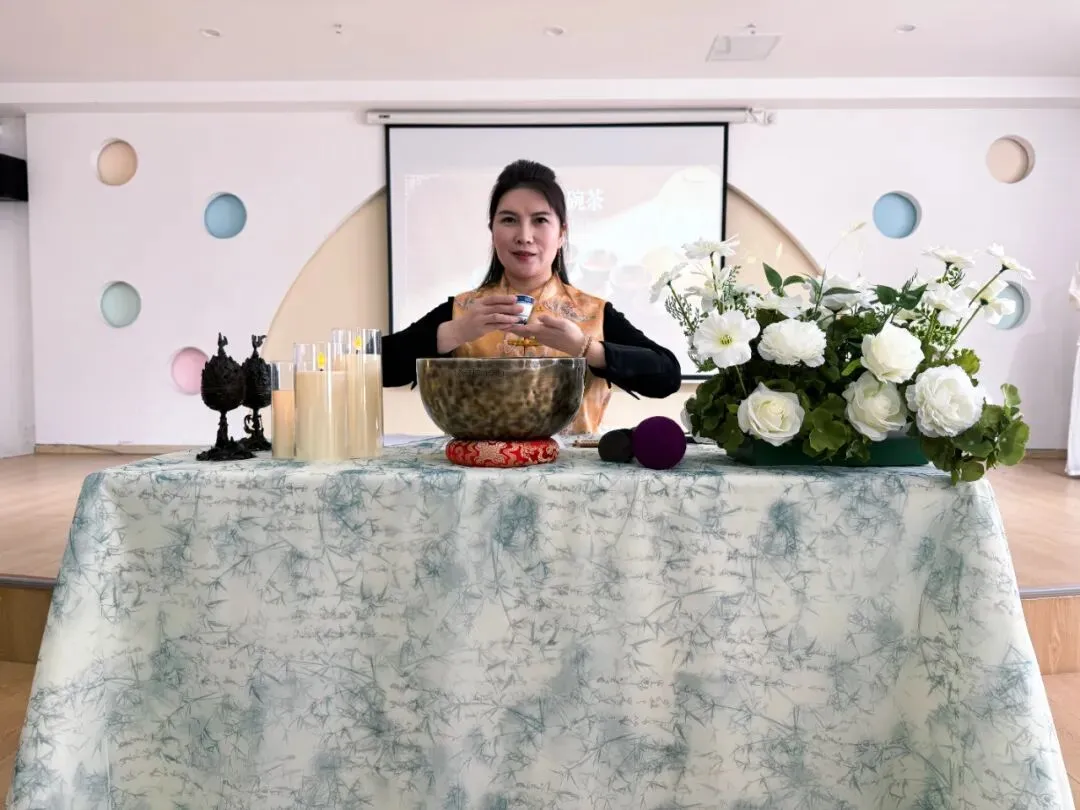 焦园长带领家长委员会的代表们沉浸式体验申时七碗茶活动。一盏清茶,七重境界,在温润茶汤中舒缓身心、沉淀心绪,以平和从容的心态,共探家园共育的美好之道,感受传统文化与静心育儿的融合之美。