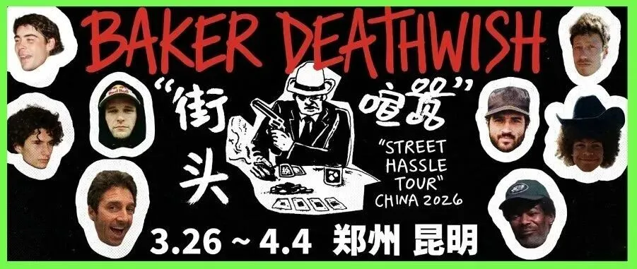 Baker 中国滑板巡回“Street Hassle” Tour 将于 3月28日 正式登陆郑州!这不仅是一场顶级滑手的现场 Show,更是属于中原滑板圈的狂欢日。
