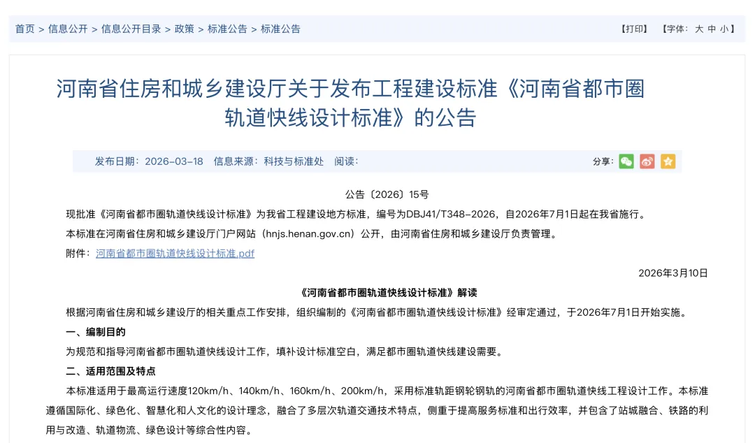 省级 “都市圈轨道快线” 专项标准,为郑州都市圈轨道建设提供了统一的标准。